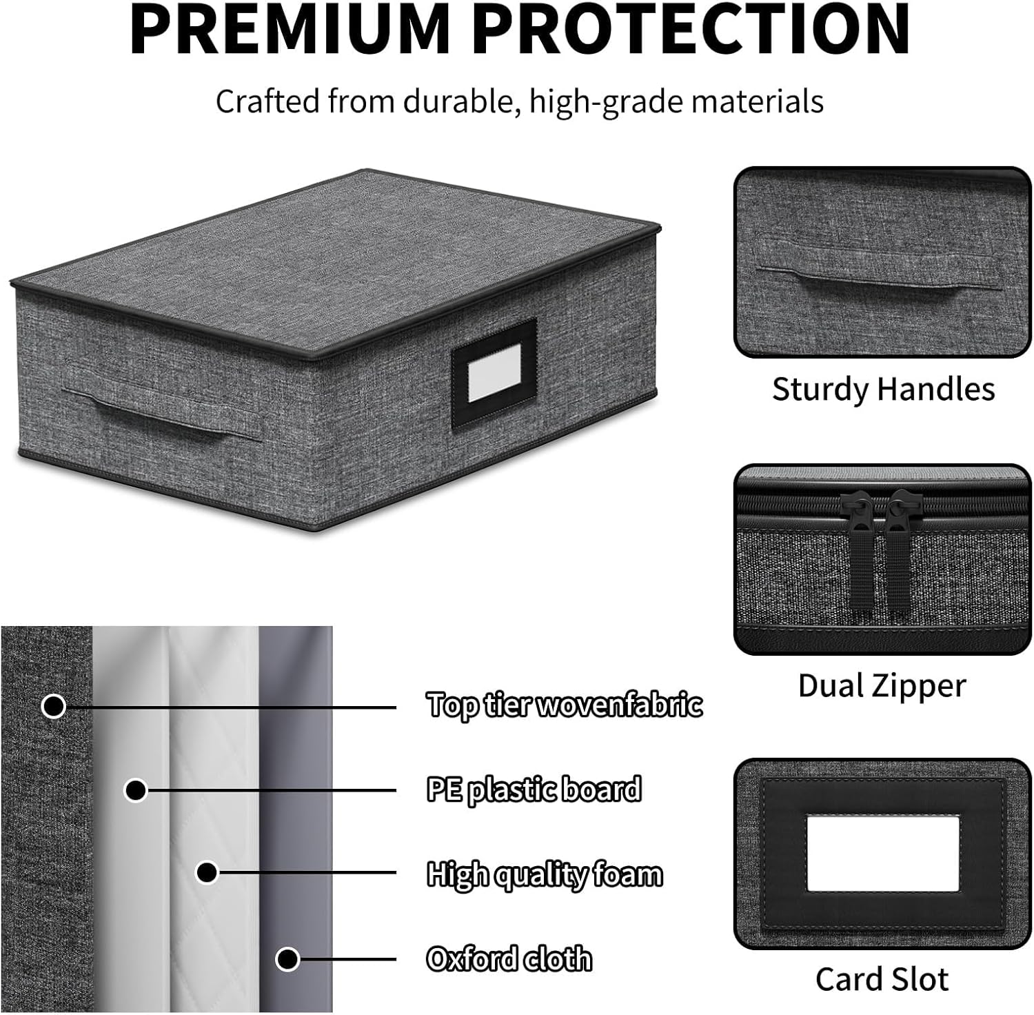 • 【Professional Dinnerware Protection】This cup storage box features a reinforced multi-layer construction, with an exterior made of premium composite linen, PE plastic board, high-density foam, and Oxford cloth. Paired with quilted lining and soft dividers, it maintains its shape without bending or collapsing, effectively protects dinnerware from scratches and impacts, and is odorless, dustproof, and moisture-proof to keep contents clean and tidy at all times.