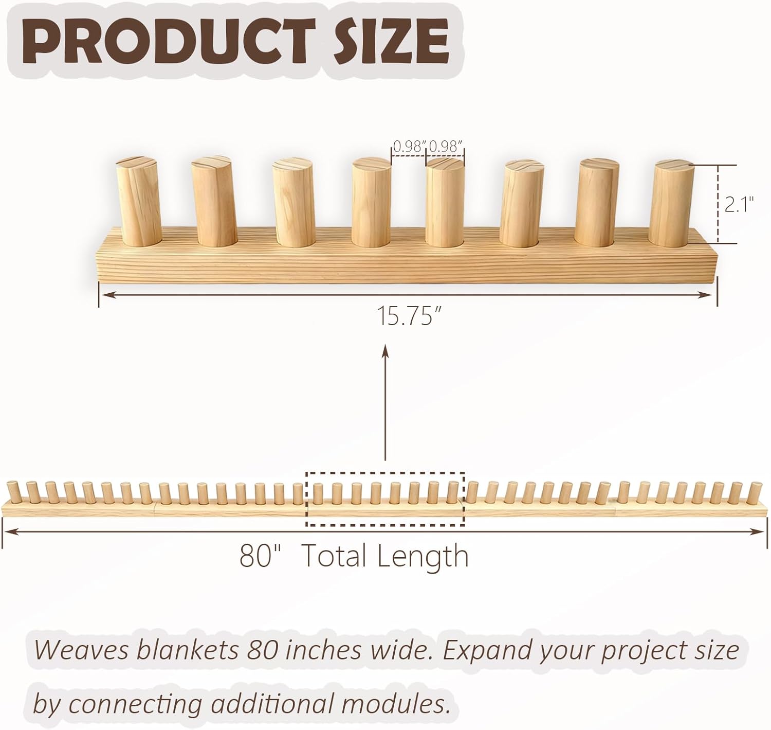 Tired of inconsistent loops in your finger knitting?Want a more uniform look that helps you make those wonderful gifts for family and friends?Or a more helpful tool to help you sell beautiful looking blankets?This loom is for you!This loom is even great for beginners, This listing is for the 63" Knitting Loom, it is detachable and interlocking and the pegs that are 1" wide---*Benefits:*---DetachableEasy to storeStandard Blanket sizes 48" 63" 80" Size Options & what you can make with them:Lovie / Pet 24″ x 24″Bassinet 16″ x 36″Car Seat 20″ x 24″Stroller 30″ x 35"Crib 30″ x 54″Receiving Blanket 36″ x 36″Standard Baby Blanket 42″ x 52″Swaddle 48″ x 48″Lap Blanket 36″ x 48″Toddlers/Child 42″ x 48″Couch Throw 48″ x 72″Twin Size Bed 48″ x 78″Full Size Bed 60″ x 78″All 36" 48" and 60" sizesFull Size Bed 60″ x 78″Queen Size Bed 66″ x 84"