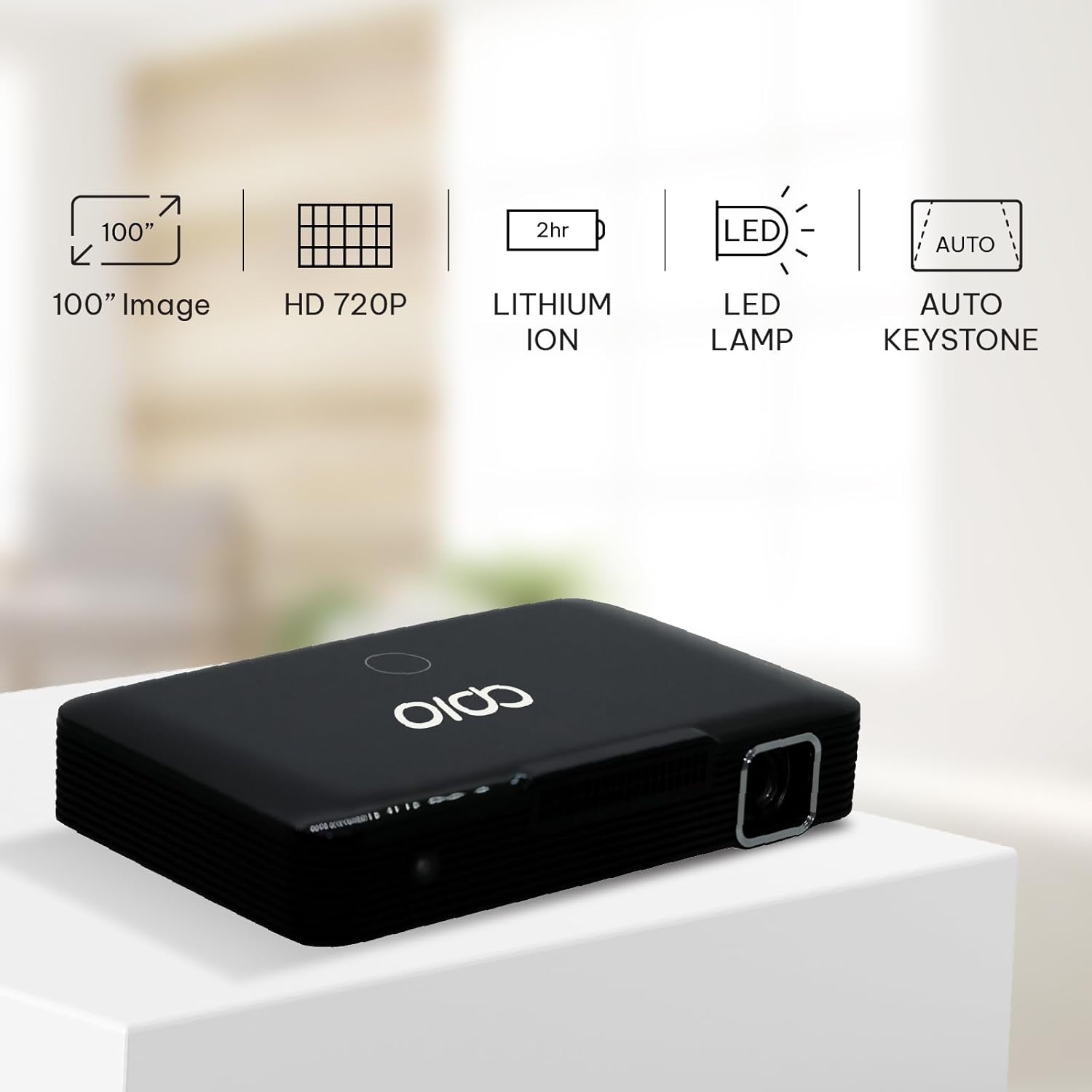 APIO specializes in technology devices. The slogan of APIO is "Future technology in your hand" to bring our customers to experience modernity and convenience through technological innovations. The favorite movies, presentations, video games, and pictures to the big screen thanks to the world's smallest HD Mini Projector by APIO. This high-performance pocket projector allows you to connect your laptop, smartphone, tablet, and more. Use your HDMI connection to enjoy a home theater experience anywhere due to the long-lasting 2-hour built-in rechargeable battery.Superior Display QualityEnjoy surprisingly large crystal clear pictures with 200 lumens of brightness for vivid images in a dark environment and the LED Lamp up to 20,000 hours of viewing time. Digital Light Processing technology allows you to experience sharp and life-like images. This pro projector features 1280x720 pixel resolution and will accept input up to 1080p.The HD projection technology operates with 6000 mAh built-in speaker and battery lasting up to 2 hours.Pocket-Sized Design Allows for Ultimate PortabilityWatch anywhere with families in a relatively dark environment! Perfect for TV marathons at home, backyard movie nights, camping with friends and family, or even for your corporate presentation. It is a small and pocket-size design so you can carry it everywhere in your bag. Compatible with HDMI input in any source!■ Long-lasting LED Lamp■ Flexible, Easy HDMI Connectivity■ Built-in Battery and Speakers■ Menu-Free Interface■ Data Modes: MAX 1920x1080 ■ Image Size: 30” to 100”■ Throw Ratio: 1.66:1■ Internal Speakers: 1.0 Watts × 2