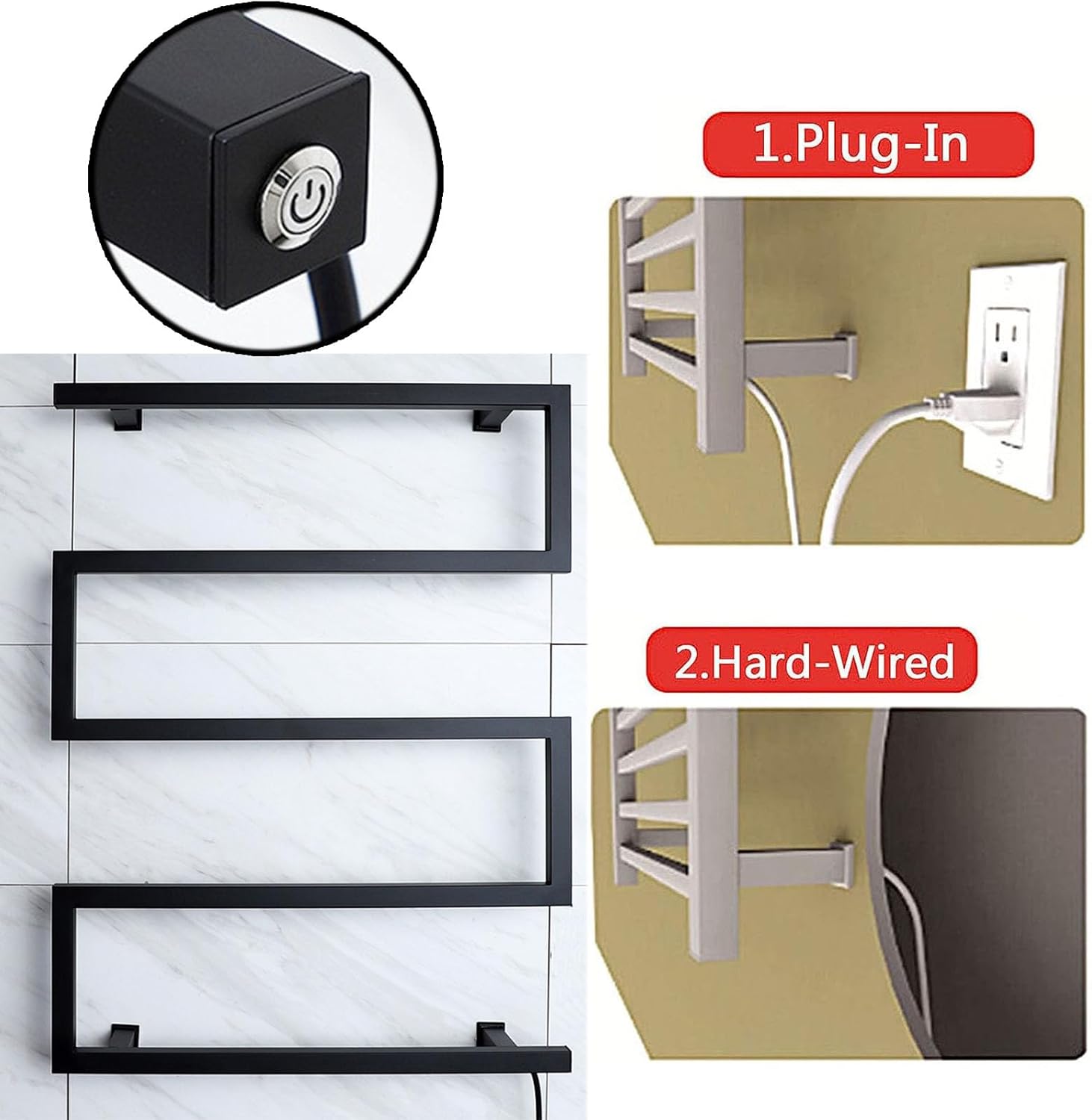 Product name: Special-shaped heated towel rack, clothes drying rack, plug-in, electric heated towel rack, bathroom, bath towel rackSpecifications: with digital display, without digital displayColor: blackMaterial: stainless steelTemperature: 50℃/122°FPower supply: plug-in, hard wiringSurface treatment: electroplatingHeating time: 5 minutesPower: 90wScope of application: bathroom, kitchen, balcony, toilet, swimming pool, hotel and other places, simple design, multi-functional usePackage contents:1* Towel heater1 * Installation accessoriesNotes:1. Due to manual measurement, the size error is 1-3cm. Errors may occur, please refer to the actual product.2. Due to shooting and environmental reasons, the color is subject to the actual product.