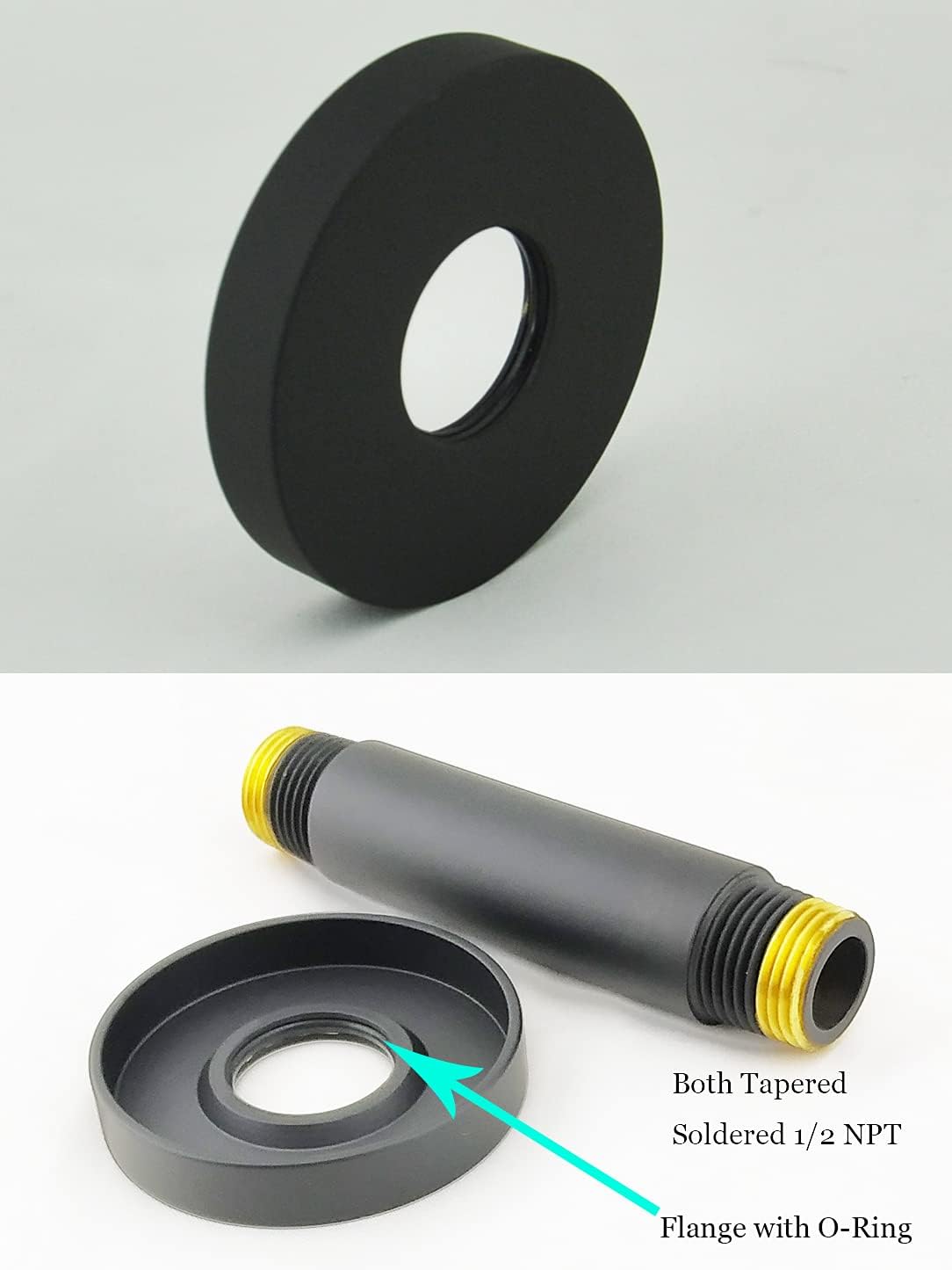 Aquaiaw Shower Arms Bundle, 3 inch Ceiling Mount Shower Arm and 8 inch Wall Mount Shower Arm, Both by Heavy-Duty Solid Brass, Both Round Matte Black, Both with Flange, All Tapered 1/2 NPT Threads