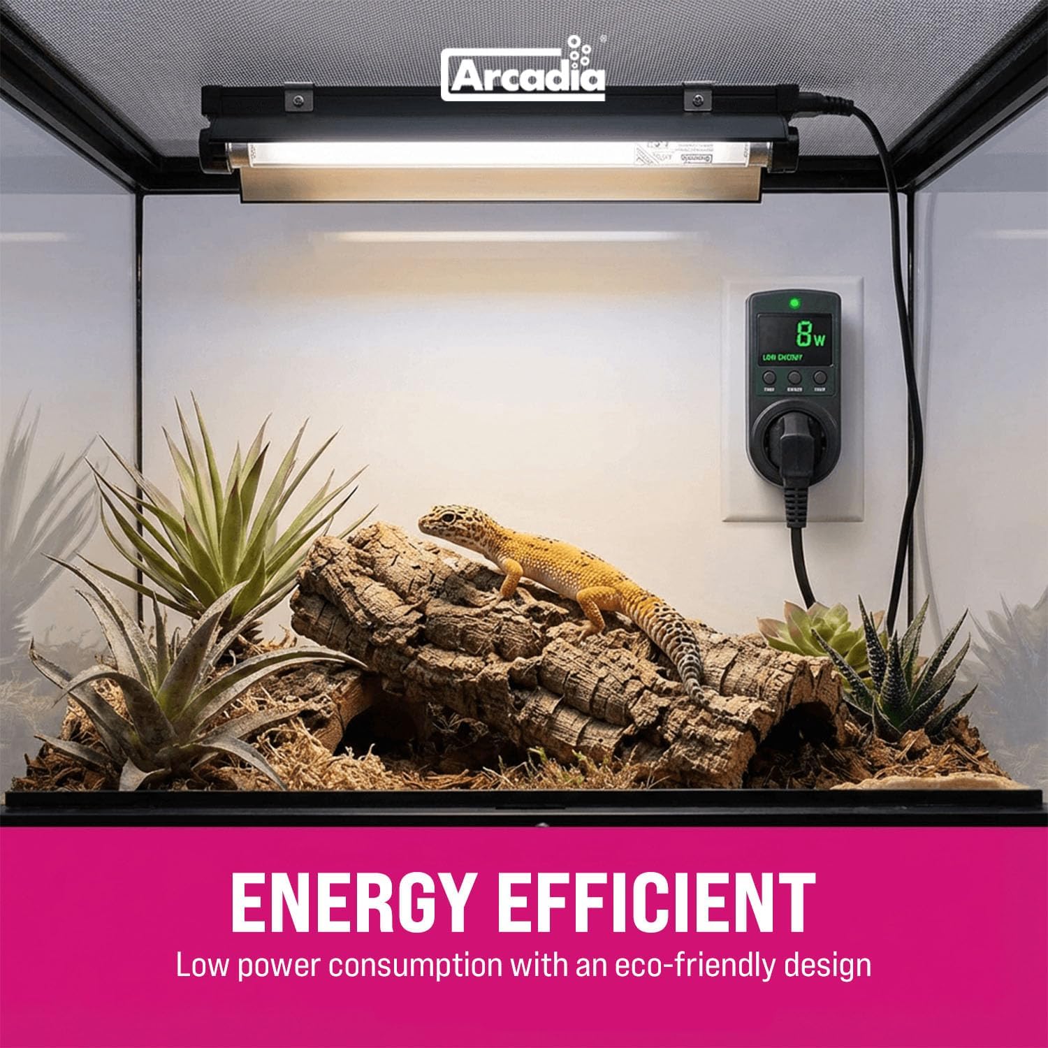 Transform your reptile's habitat with the easy-to-use ShadeDweller ProT5 Kit, designed to deliver essential UV energy safely and effectively. Ideal for smaller or shallow enclosures, and perfect for crepuscular arboreal species, this lighting solution ensures your pet gets the optimal UV exposure it needs. Easily fit into a wooden vivarium or place above the mesh of a glass vivarium, accommodating various species like Crested Geckos. Provides targeted areas of light and shade, allowing your reptile to self-regulate within standard-sized enclosures. Ensures a seamless and comfortable lighting experience for your pet. Finally, a specialized lighting system for species like Leopard Geckos, ensuring their well-being. Pair the ShadeDweller ProT5 with the Arcadia Reptile Deep Heat Projector® or Halogen Flood lamp for the most effective bioavailable heat source, enhancing your reptile's environment to mimic natural conditions. Give your pets the best care with ShadeDweller ProT5 – because they deserve it.