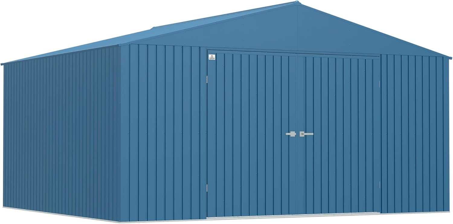 The Arrow Elite Outdoor Lockable Steel Storage Shed Building will add an attractive and functional storage space. This 14’ x 12’ steel storage building is engineered with a premium steel material to provide superior protection for your stored tools, gardening supplies, and lawn equipment. Constructed from Galvalume, an aluminum and zinc plated steel, the Arrow Elite Storage Shed is a long-lasting storage option for your property. This plated steel is highly anti-corrosive. This reliable storage building is designed with a tall gable roof for added headroom and a squared wall design for a sleek look. The metal shed features tall 72" vertical wall panels to help store taller items and provide adequate walk around space. With the 88.00" W x 69.77" H shed entrance, you can easily access the shed's interior and retrieve items effortlessly. The reinforced and sturdy wide door allows easy access to the interior of your storage shed, while also allowing storage against the front wall. Protect your items from theft with the lockable swing shed door, which features a brushed nickel key lock handle. In addition, gable vents provide increased air flow to the shed's interior. The Arrow Elite Shed comes ready to assemble with pre-cut and pre-drilled parts. Proudly manufactured in the USA with globally sourced material. The storage shed measures 144.7" D x 94.4" W x 170.9" H with 164 sq. feet of storage space.