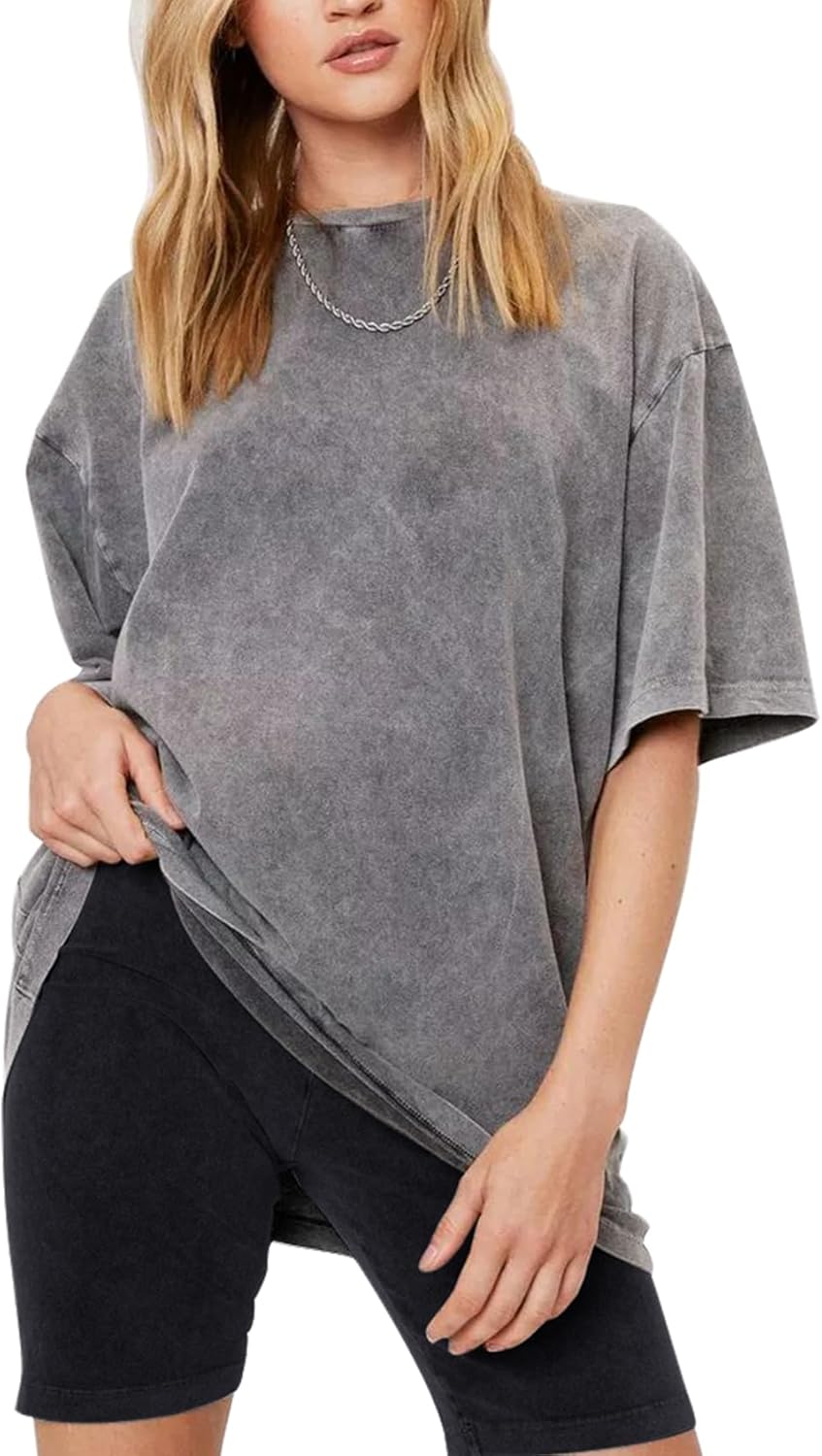 | Style Name | Women Oversized T Shirts Acid Washed Cotton Tees |
