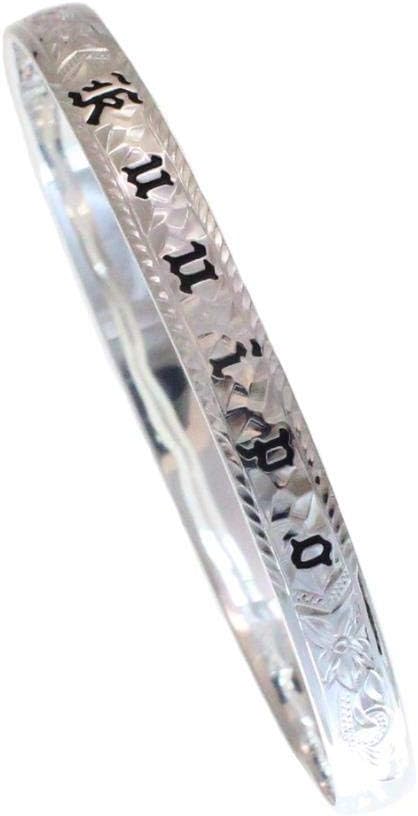 925 Sterling Silver Hawaiian Scroll Plumeria Flower black enamel Kuuipo smooth edge 6mm Bangle Size 7-9