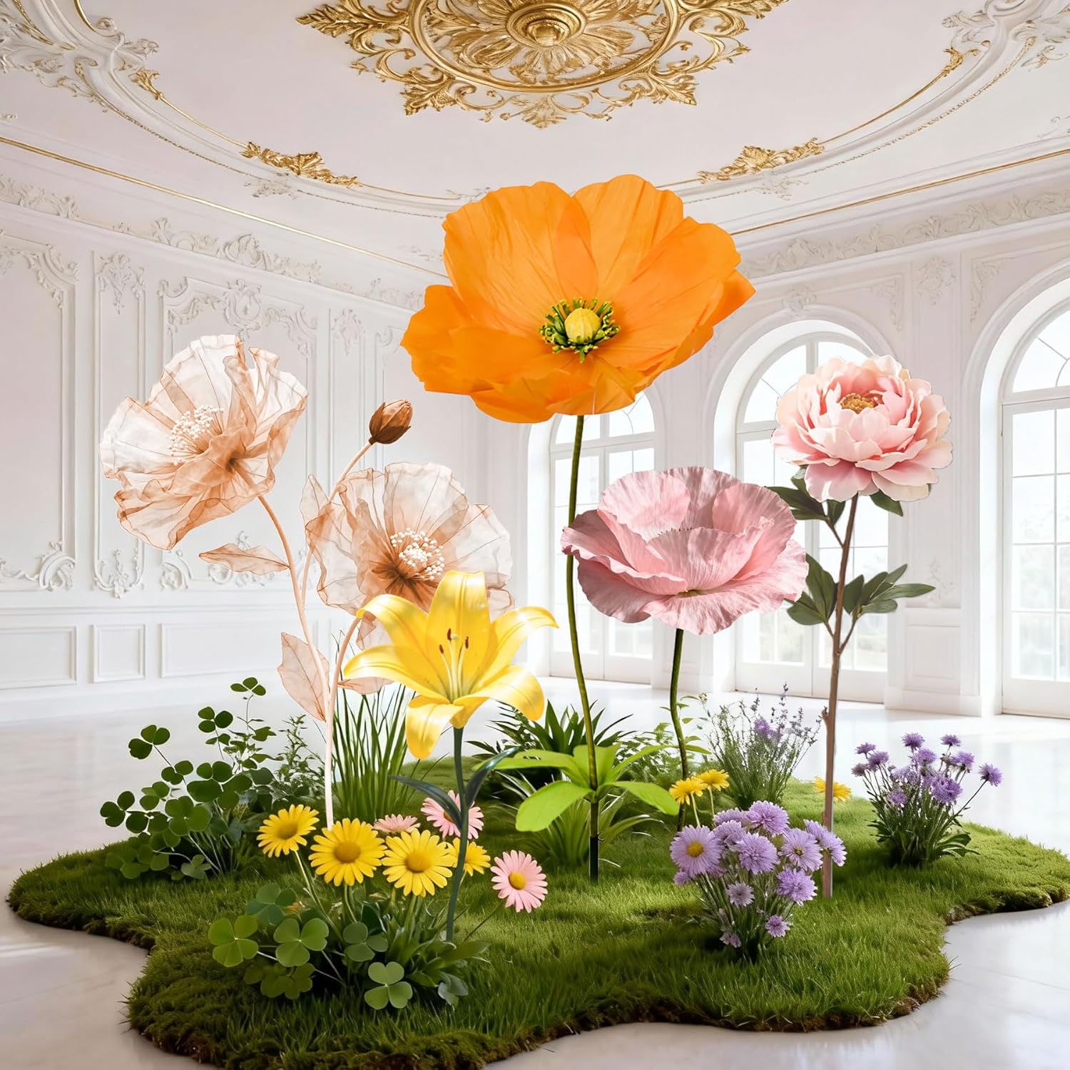 | Additional Features | Flexible stem, Bendable PVC stem, Adjustable height flower stand, Collapsible giant flower, Non-toxic materials, Lightweight, Secure wall mount,Easy installation, Damage-free hanging,, Wall hanging 3D flower, Flat back paper flower, Nursery wall flower decals., elf-standing giant flower, Flower on stem with base, Giant flower with metal stand. |