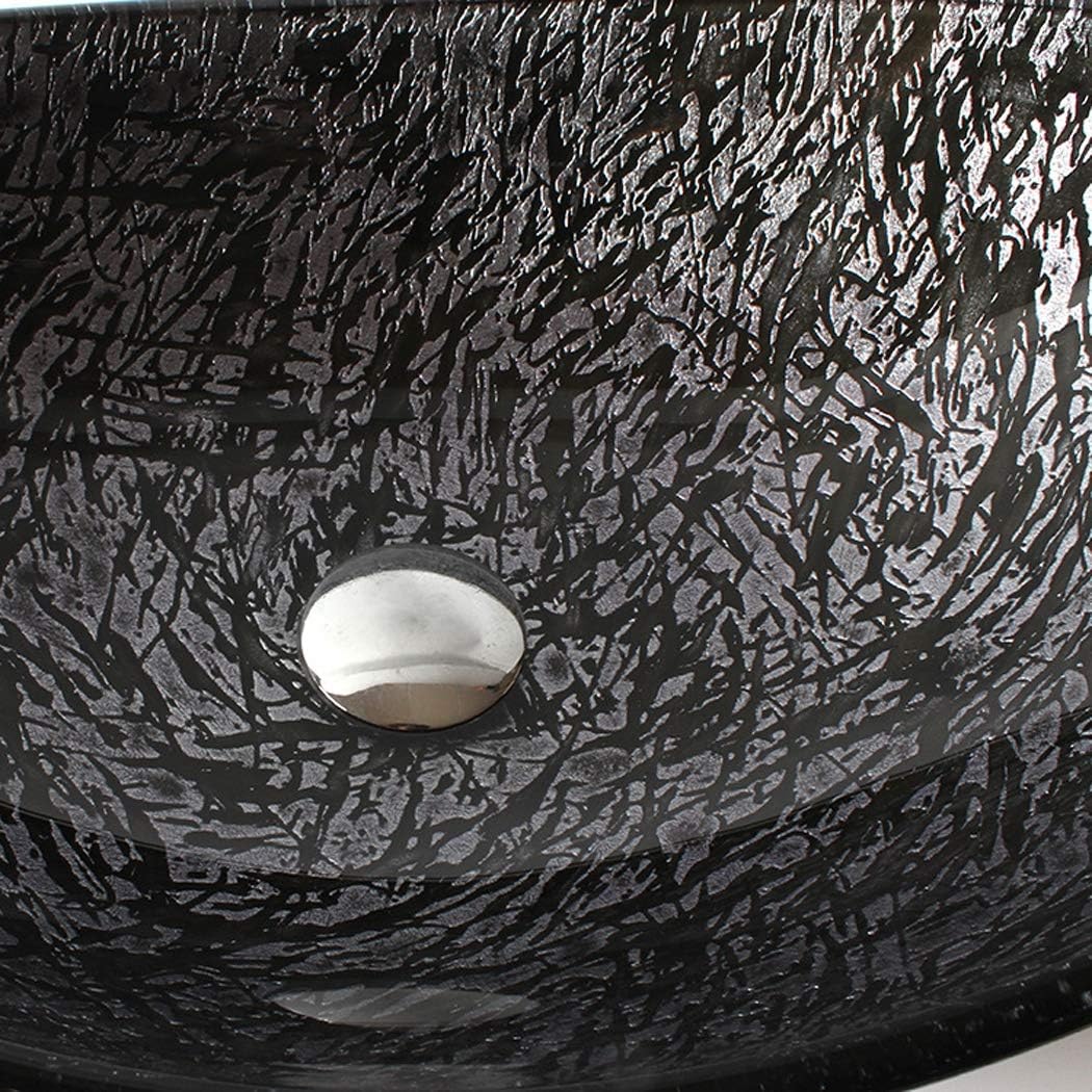 Modern tempered glass sink with chrome tap and drain plug. Material: Tempered Glass Basin/Sink Dimensions: A 540 x 360 x 165 mm, Thick 12 mm, W 460 x 130 mm, Thickness 19 mm. Applicable space: family, hotel. Glass hole size 45mm Accessories List: Basin, Chrome Faucet, Drain Fitting, Mounting Ring