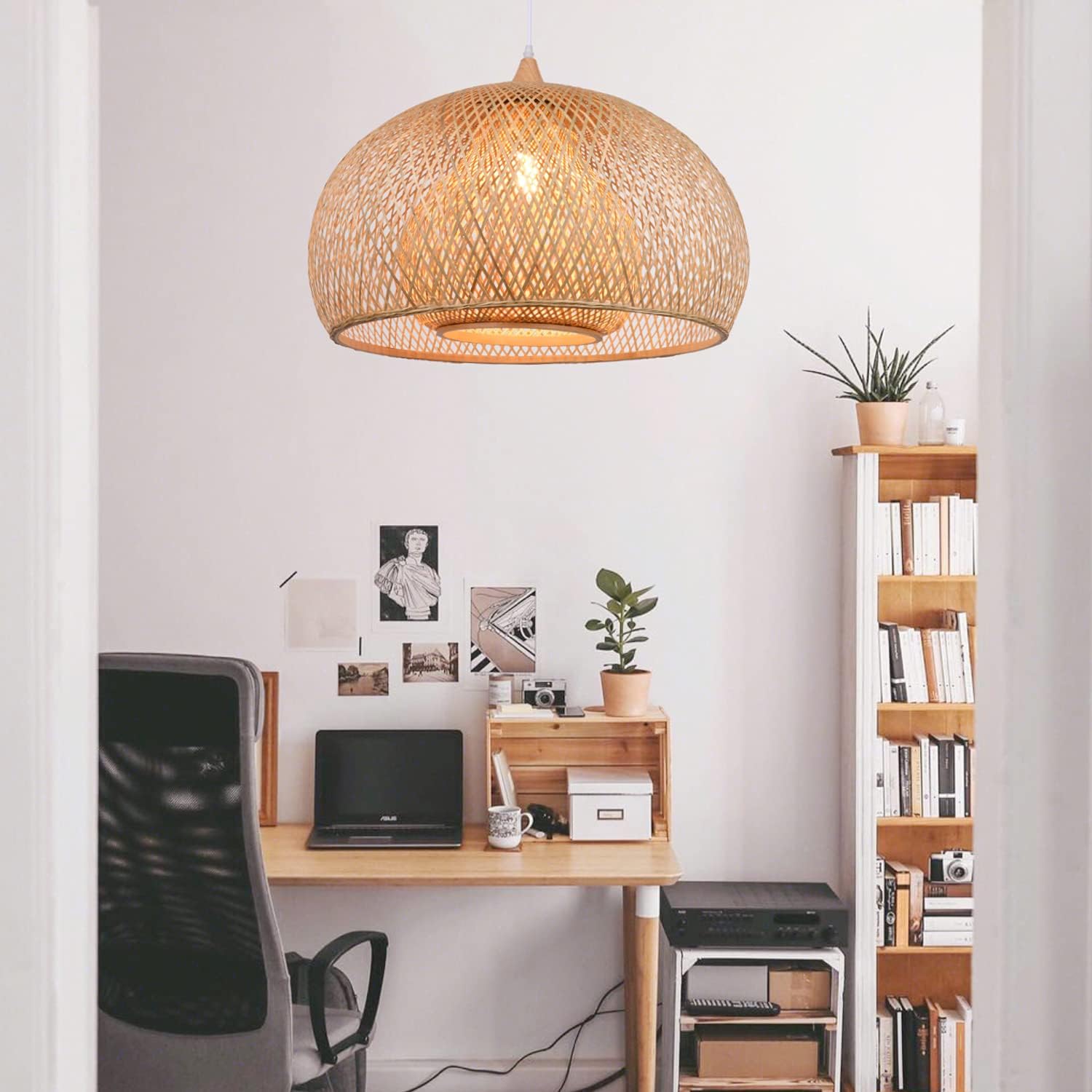 Arturesthome 1 Light Bamboo Dome Pendant Lighting, Coastal Handwoven Ceiling Lampshade Chandelier, Hanging Lamp Light Fixture for Kitchen Living Room