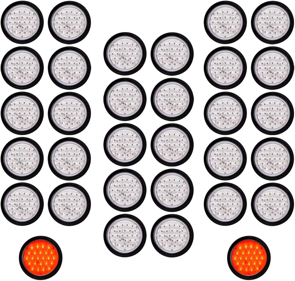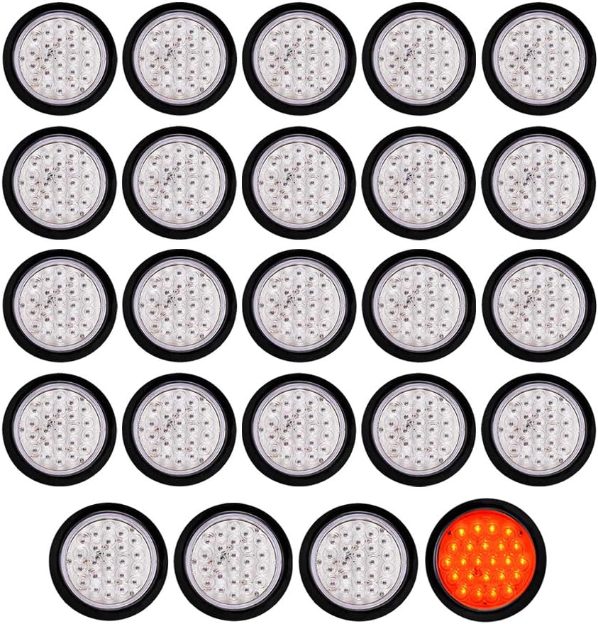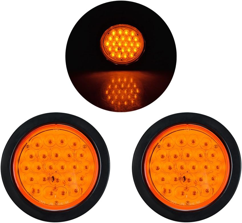 SOLD & WARRANTY AGAINST MANUFACTURING DEFECT BY ASTRA DEPOT ONLY WITH TRADEMARK REGISTER WHY CHOOSING OUR LIGHT Wanting to promote maximum safety for your vehicles and for everyone working around your truck or trailer? The Astra Depot 4" round 24 LED tail lights, turn signal, parking lights in AMBER are manufacture meet DOT Requirement and greatly increases the visibility of the equipped automobile. The sealed polycarbonate housing is rugged and extremely durable, allowing the trailer lights to withstand dust, rain, snow, strong water jets, and even to be submerged in shallow depths of water. Constructing with bright LEDs with optic lens over each diode, these Astra Depot 4 inch (ound LED tail light comes with the hardware needed for an easy installation and convenient upgrade to all trailers and trucks. Product detail: Brand : Astra Depot Lens Color : AMBER Light Color : Amber Light Dimension : 5.2" (Outer) ; 4" (inner) Thickness: 1.2" Wire Length: Approx. 8" (21cm) Voltage: 12V DC Wattage: 12W Number of LED: 24 Material: ABS Housing + PC Lens + Rubber Cover Weight: 190g/1pc 3 wires connection system: White for Negative, Red and Black for Turn Signal Compatible for most vehicles with 12V DC Package Included 12X Light with grommet 12X 3-prong connector