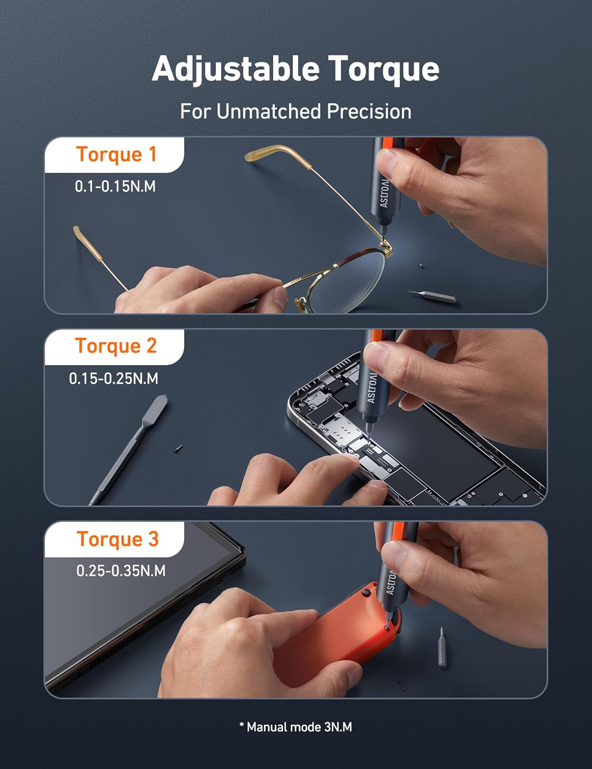 AstroAI ES60 3.7V Mini Electric Screwdriver, 63-in-1 Electric Screwdriver Cordless Set with 60 Magnetic Bits, Rotatable Magnetic Storage, Repair Tool Kit for Phone Camera Laptop Watch
