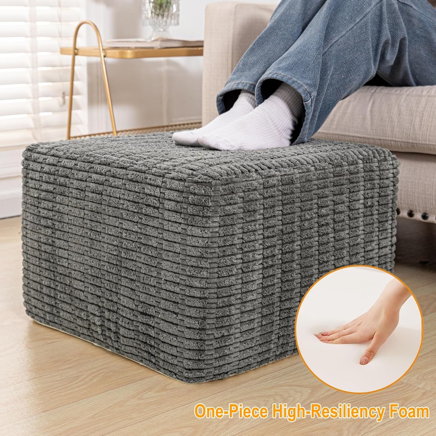 • 【Premium High-Resilience Foam Core Ottoman】This 20" x 14" Inches square ottoman boasts a solid, one-piece high-density foam core (no cheap shredded fill) for superior support and long-lasting comfort.Its advanced rebound structure resists sagging, making it ideal for all-day footrest use or durable extra seating.
