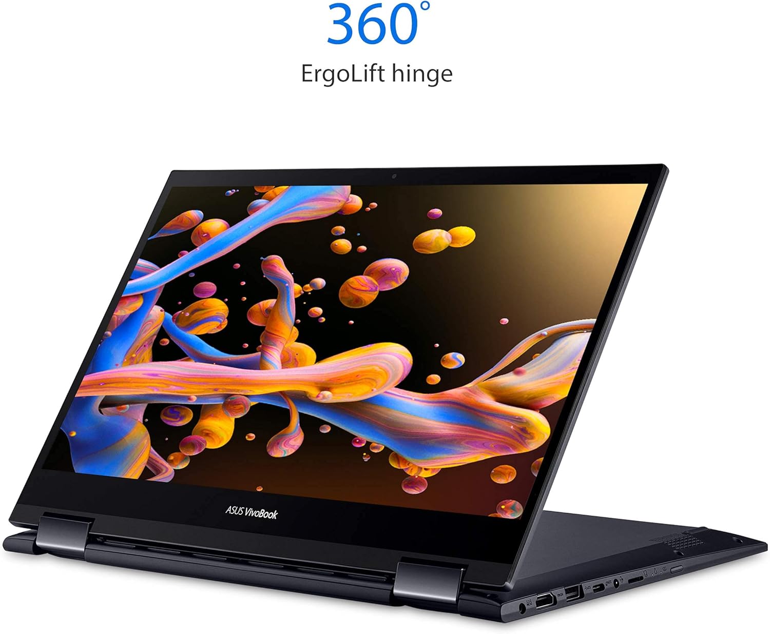ASUS VivoBook Flip 14 is a convertible laptop that’s full of personality, sporting a sleek Bespoke Black finish and a color-blocked Enter key with yellow edges and text. Ready for performance, VivoBook Flip 14 is powered by up to an AMD Ryzen 7 5700 mobile processor with 8GB memory and features a up to 512GB PCIe SSD. A sturdy 360° hinge holds the display firmly at any angle, giving you the flexibility to use VivoBook Flip 14 as a traditional laptop, a tablet, or anything in between. For Free Windows 11 upgrade eligible devices, visit ASUS Windows 11 website for more information.