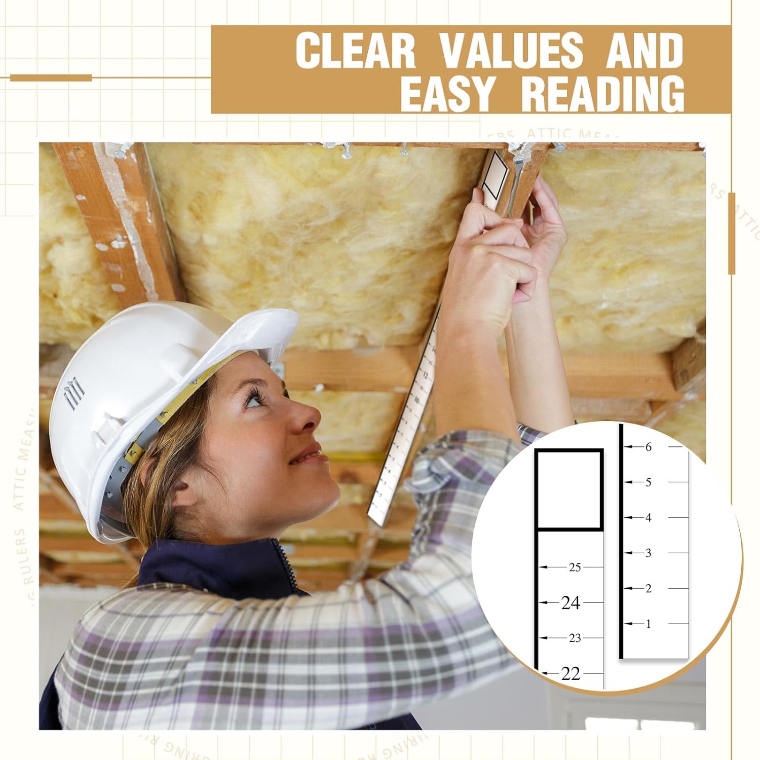 Features: Constructed from robust cardboard, the attic measuring rulers are both lightweight and easy to handle, while also offering remarkable durability. Their excellent quality build ensures they can endure frequent use without compromising on accuracy, maintaining reliable performance over time. The attic insulation R-value rulers deliver an impressive array of features. With a generous pack of 200 units, they offer durable construction and a convenient size that ensures easy usability. Their wide range of applications makes them an essential tool for homeowners in need of accurate insulation measurement. Specifications: Material: card stock Color: white, black Size: 25 x 2 inches/ 63.5 x 5 cm Package includes: 200 x Attic measuring rulers Notes: Manual measurement, please allow slight errors on size. The color may exist a slight difference due to different screen displays