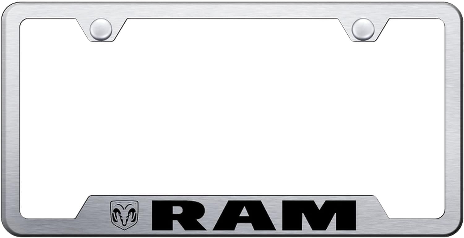 License Plate Frame that features with notched design With wide bottom and gracefully notched corners. Crisp laser etched lettering in factory or scripted fonts. The open edges allow for the display of state registration stickers in those markets that require them. Exceptional in both quality and design, these stainless steel license frames are manufactured using the finest materials and craft. License frames include vehicle specific hardware and matching theft deterrent caps to conceal unsightly equipment. Proudly made in the USA and backed by a lifetime warranty against flaws in materials or craft. Product dimensions: 6.25 Inches (Height) x 12.25 Inches (Length)