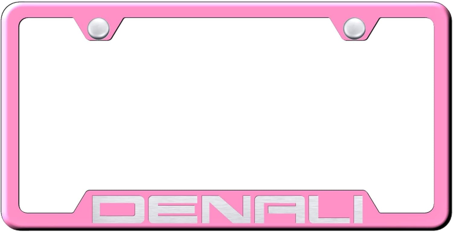 License Plate Frame that features with notched design With wide bottom and gracefully notched corners. Crisp laser etched lettering in factory or scripted fonts. The open edges allow for the display of state registration stickers in those markets that require them. Exceptional in both quality and design, these stainless steel license frames are manufactured using the finest materials and craft. License frames include vehicle specific hardware and matching theft deterrent caps to conceal unsightly equipment. Proudly made in the USA and backed by a lifetime warranty against flaws in materials or craft. Product dimensions: 6.25 Inches (Height) x 12.25 Inches (Length)