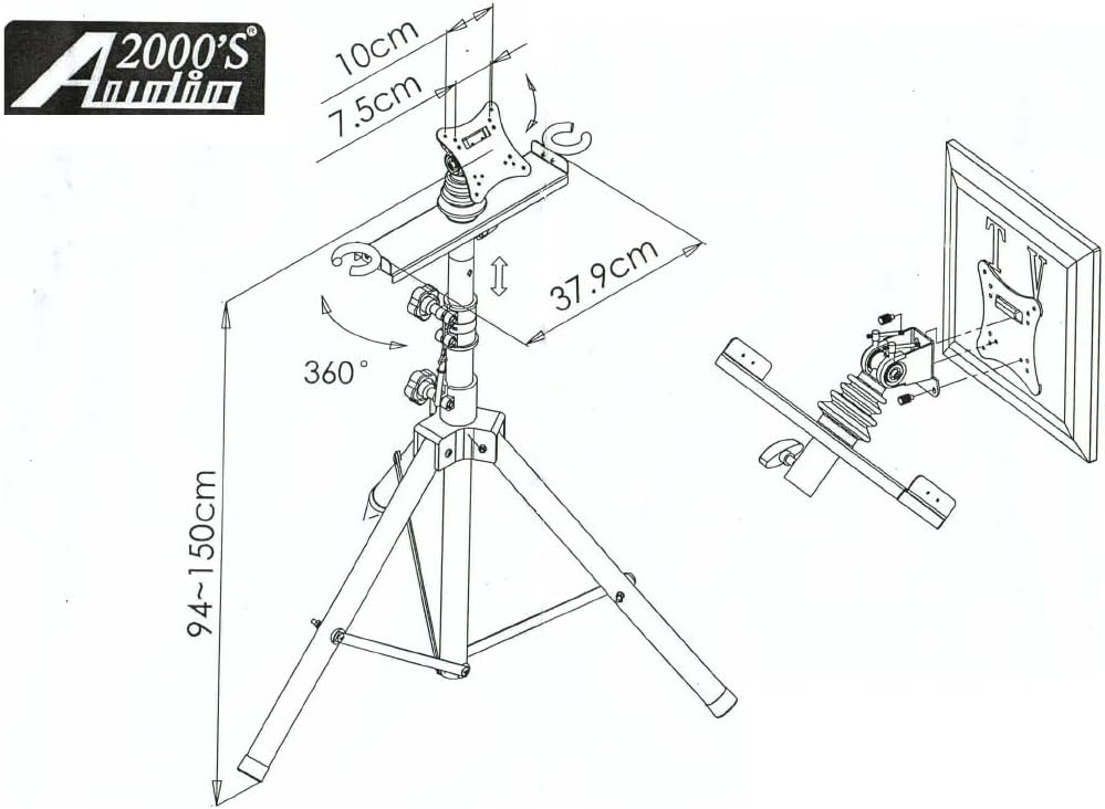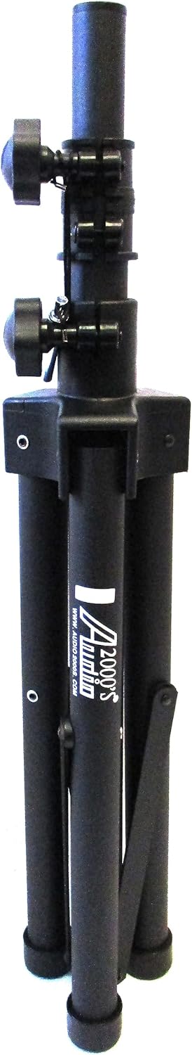 The Audio2000'S S420Y is a heavy-duty flat panel/TV monitor stand with foldable tripod legs and a universal mount & hardware compatible with VESA 75x75 and 100x100 hole patterns. The S420Y stand, constructed with heavy duty steel, includes a security pin and comfort twist knobs to securely lock in height adjustment to have adjustable height. Constructed with anti-slip padded rubber boots, the foldable tripod legs make the S420Y stand ideal for portable screen display placement, easy setup and storage. The universal mount features a convenient tilt angle adjustment mechanism for better viewing with novel tool-free knobs. Overall, the S420Y is a heavy-duty high-quality flat-panel TV monitor stand while the setup of the S420Y stand is easy and all necessary assembly and mounting hardware are provided. Comparable to AST420Y.