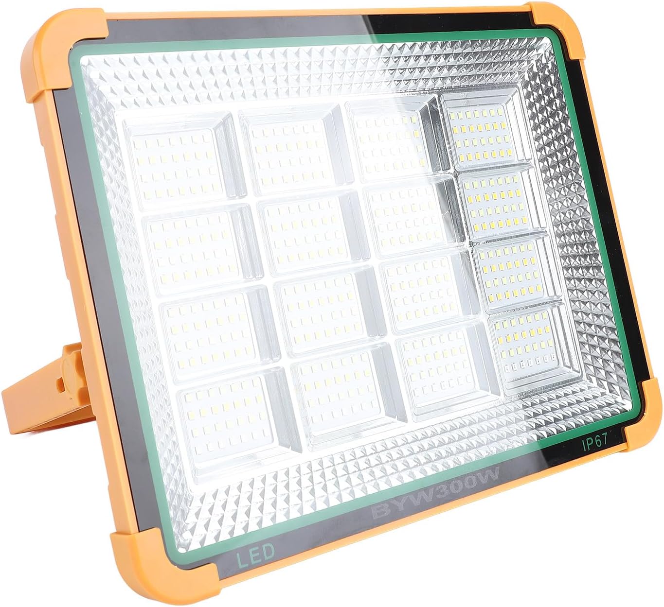 [User Friendly Design] The 360 degree adjustable handle and detachable hook provide flexible placement options making it easy to hang or position the light anywhere. its lightweight and portable design ensures convenience and adaptability for all your lighting needs. [Durable and Weatherproof] With an ip65 and rating this rugged led work light is designed to withstand harsh outdoor conditions. ideal for camping fishing construction sites and power outages ensuring bright light in any weather. [Super Bright and Versatile] Featuring 448 led beads and an impressive 25000 > output this work light offers four adjustable lighting modes including warm light white light and safety sign light. perfect for various activities from camping to emergency repairs. [High Capacity Rechargeable Battery] This portable solar work light is equipped with a powerful 10000mah built in battery that can be charged via usb or solar panels providing up to 20 hours of continuous medium brightness use. the efficient energy storage ensures you have reliable illumination whenever you need it. [Multifunctional Power Bank] Not just a work light this device also serves as a portable power bank with four battery status indicators. stay powered up on the go and never worry about running out of energy during tasks. Spec: Item Type: Portable Solar Work Light Material: ABS, PC Battery: 1x10000mAh Rechargeable Li Battery (Shipped with Built in Battery) Power: 300W Safety Level: IP65 Number of LEDs: 448 LED Beads Package List: 1 x Portable Solar Work Light 1 x USB Cable How To Use: Take out the product and switch it on to use.