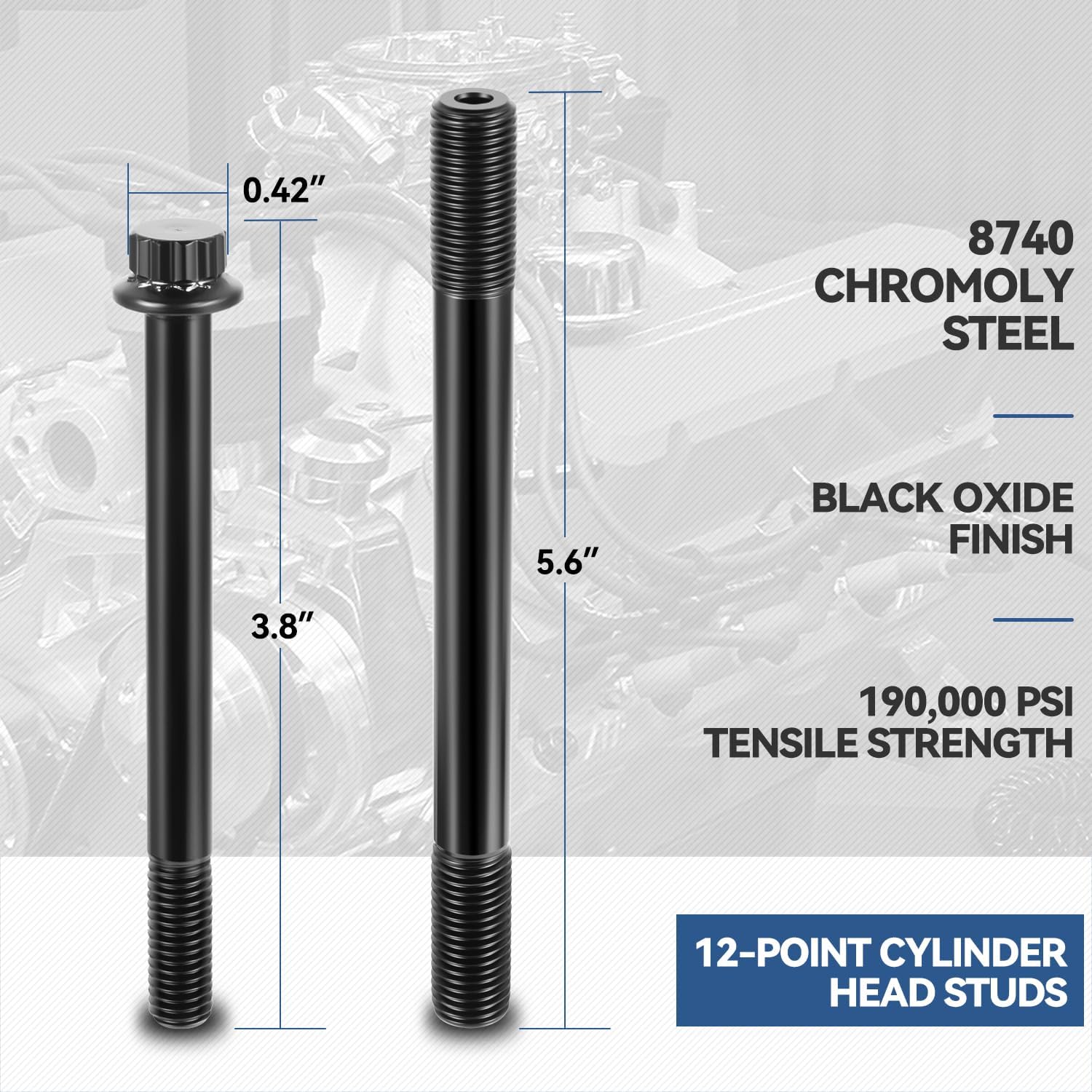 Stretched Head bolts can lead to blown head gaskets and overheated engines. Head Studs offer a alternative when its time to reseal a engine head. Bolts when torqued are affected by two difference forces. The bolt stretches and twists. A Headstud will not twist as only the nut is torqued down. This allows them to add more clamping force and helps reduce the chance of burning up a gasket Includes:36 x Studs 36 x Washers 36 x Nuts 8 x Bolts This item is compatible with:Compatible with 2001-2016 Chevy / GMC 6.6L Duramax Turbo Diesel Engines Note: