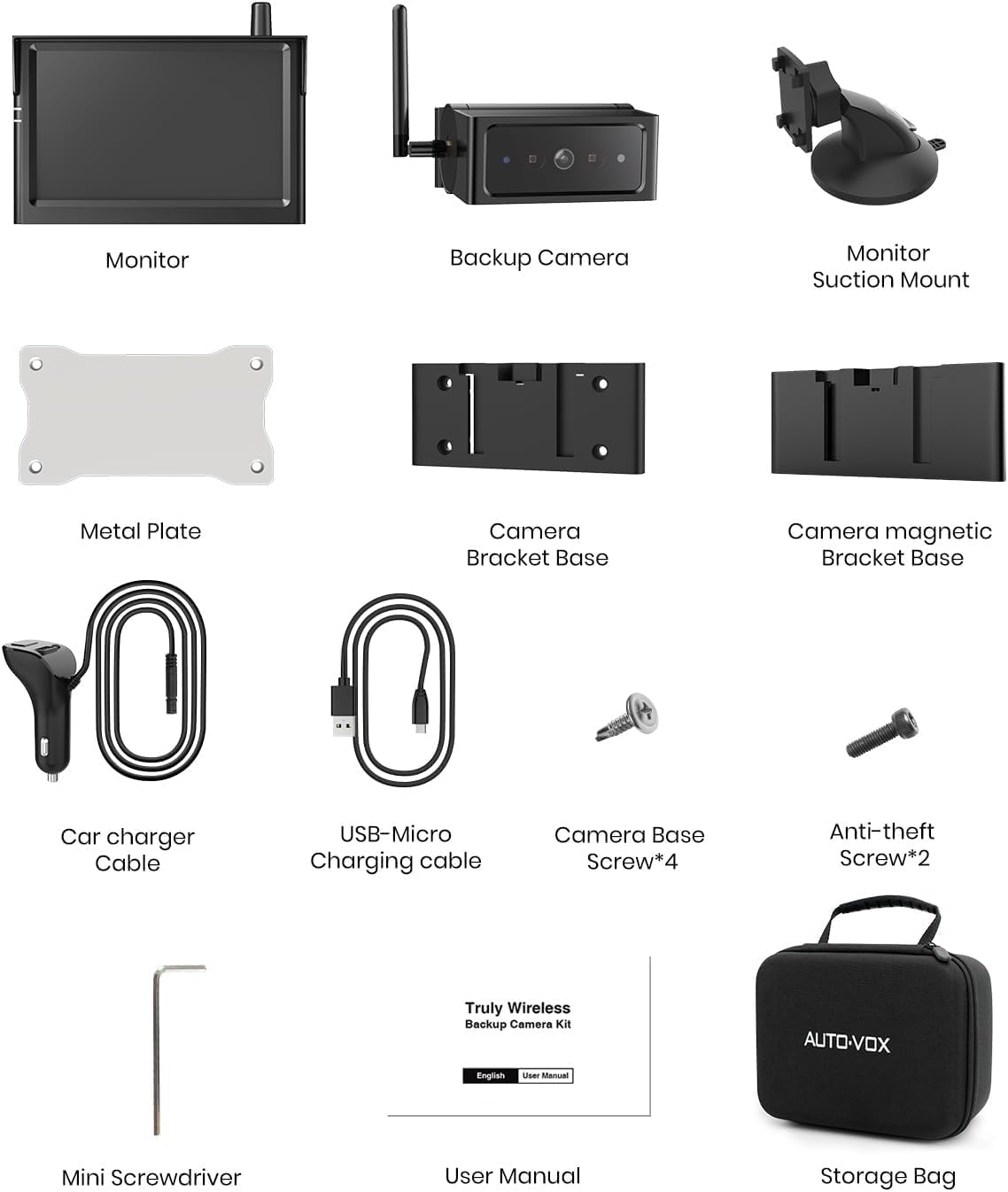 | BuiltIn Media | Car Camera, Magnetic Bracket, Monitor, Monitor Mount, Storage Bag |