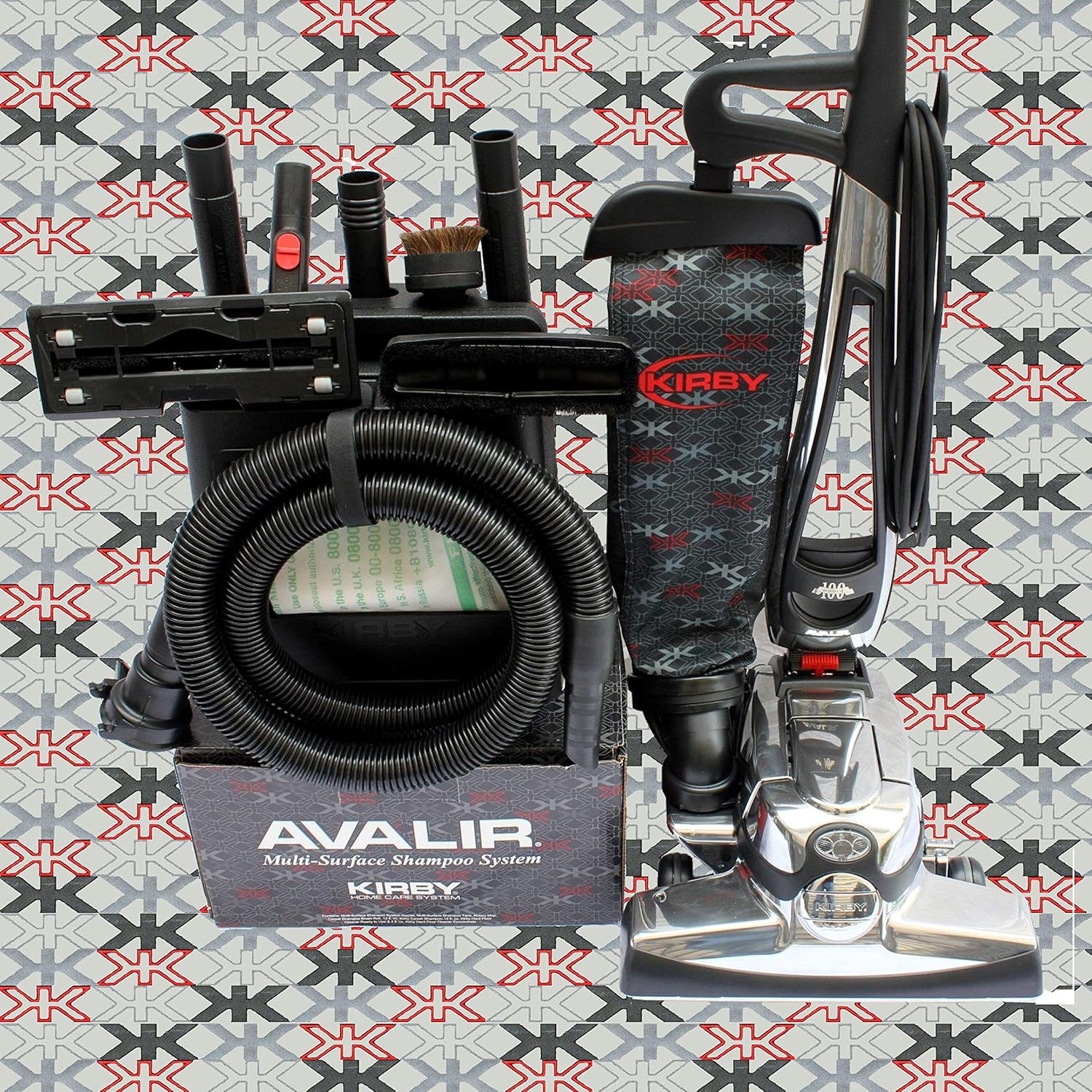 The Avalir took the power of design to a new, more modern level with softer lines and gentler curves. Numerous appearance changes and product improvements were made including: · More ergonomic and comfortable handle · Wider polished aluminum handle enhances the look of the unit · Chrome plated belt lifter blends into the front of the unit · Longer-lasting LED headlight · Higher nozzle bumper provides better protection for table and chair legs · Durable polymer base pan reduces unit weight · Handle locks at base for easier carrying · F-Style filter bag attachment makes bag changes easier · Less restrictive air path of the Mini Em-Tor improves air power.