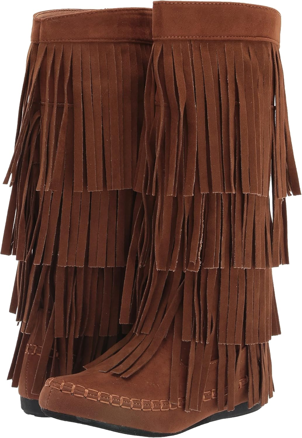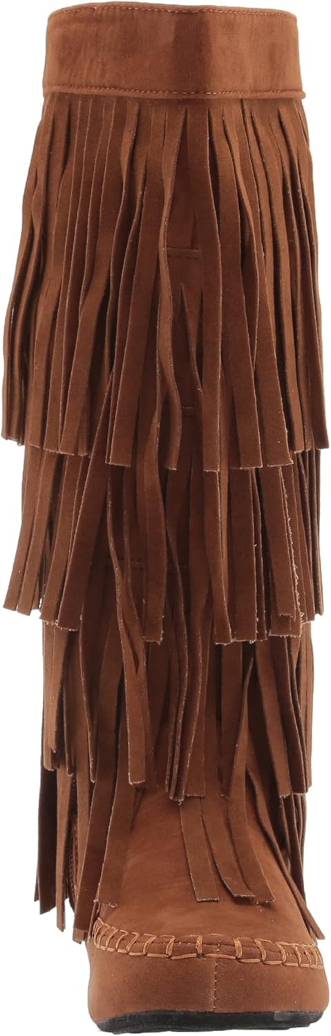 Introducing our Women's 4 Layer Fringe Moccasin Mid-Calf Boots with slip-on closure, where comfort meets bohemian chic. These boots are designed to be both stylish and convenient, making them a must-have addition to your wardrobe. Featuring four layers of eye-catching fringe, these mid-calf boots effortlessly capture the essence of bohemian style. The cascading layers of fringe add movement and flair to your outfit, making a bold fashion statement wherever you go. Embrace your free-spirited side and express your unique sense of style with these attention-grabbing boots. Crafted with care, these moccasin-style boots are made from high-quality materials that offer both durability and comfort. The soft and supple faux suede upper wraps your feet in luxury, while the mid-calf height provides a flattering silhouette that pairs perfectly with jeans, skirts, or bohemian dresses. Convenience meets style with the slip-on closure of these boots. Simply slide your feet in and out effortlessly, saving you time and ensuring a secure fit. The slip-on design also adds a touch of versatility, allowing you to easily pair these boots with various outfits. Comfort is a priority with our 4 Layer Fringe Moccasin Mid-Calf Boots. The cushioned insole provides support and cushioning, ensuring that your feet stay comfortable throughout the day. The sturdy outsole offers traction and stability, allowing you to confidently navigate different surfaces. These boots are perfect for various occasions and settings. Wear them to music festivals, outdoor events, or casual outings to add a bohemian touch to your look. These versatile boots can effortlessly transition from day to night, making them a stylish choice for any occasion. Step into bohemian chic style with our Women's 4 Layer Fringe Moccasin Mid-Calf Boots with slip-on closure. Embrace the carefree spirit of the boho lifestyle while enjoying the convenience and comfort of these fabulous boots. Make a statement and let your unique fashion sense shine with these fringe boots that are bound to capture attention wherever you go.