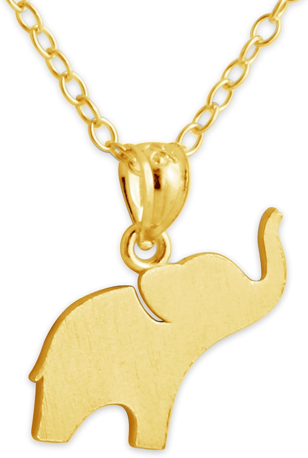 Gold Plated Silver Necklace Cute Elephant Animal Silhouette Symbol of Good Fortune and Strength Charm Pendant Necklace
