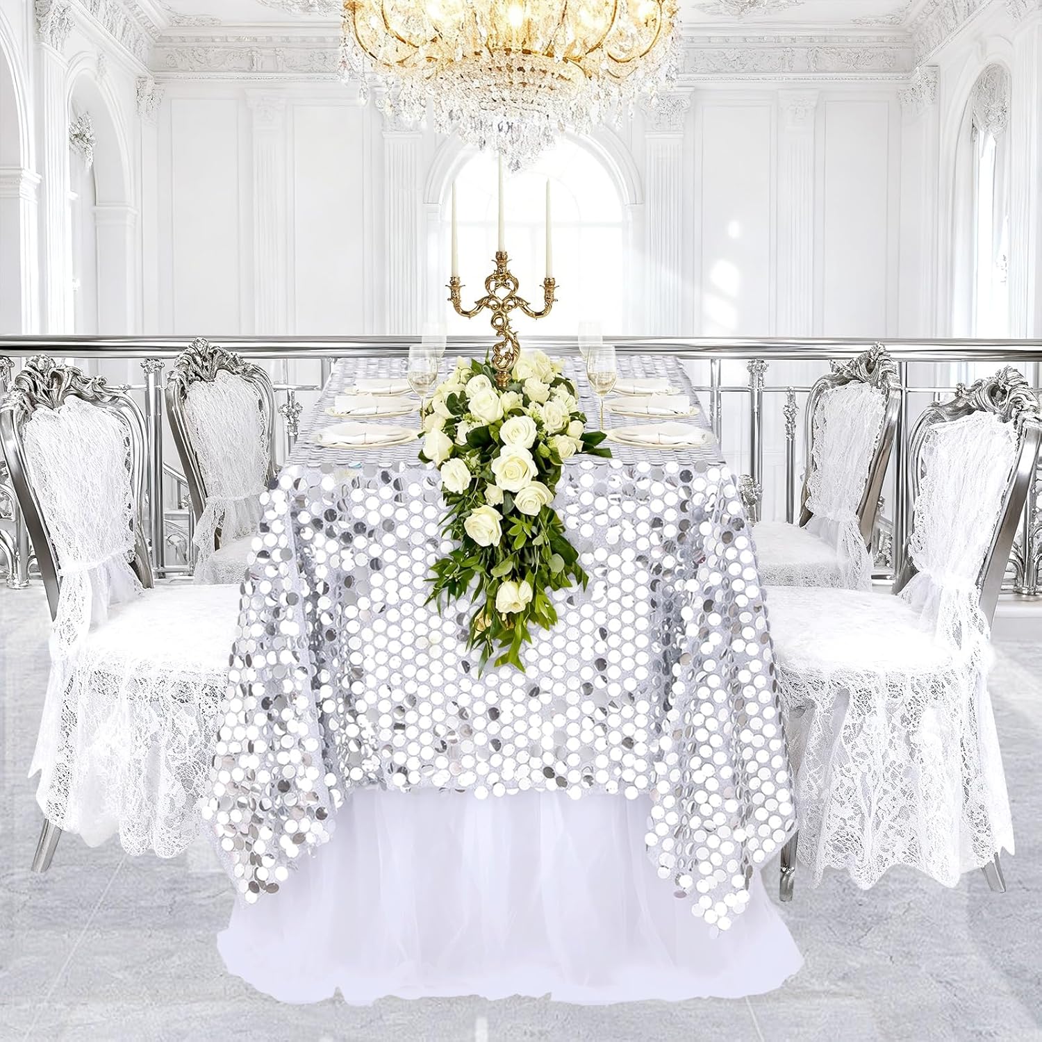 Welcome to B-COOLThis is a Big round Sequin, unique laser reflection, colorful and durable, big payette sequin tableclothItem information:Materiel: 18MM high-quality round sequin with Thick thread base fabric backing. Sizes: 50x102 Inches. Quantity: 1 Piece.Product Design: The sparkly sequin table cloth can reflect different light at different angles with bronzing technology. Unique Laser Reflection makes the light colorful, the table cloth for parties, and will be the highlight of your party, leave a deep impression for your family and guests.Multi-Function: The pretty sparkly sequin tablecloth well decorates home, hotel, wedding, parties, grand estates and gardens and more, that makes your life chic.Care Instructions: Light stains just need to be wiped off and gently scrubbed. Recommended to hand wash and air dry, do not machine wash.B-COOL Wedding Party manufacture of sequin fabric product includes: big payette sequin tablecloth, sequin tablecloth, sequin backdrop curtain, sequin table runner etc.
