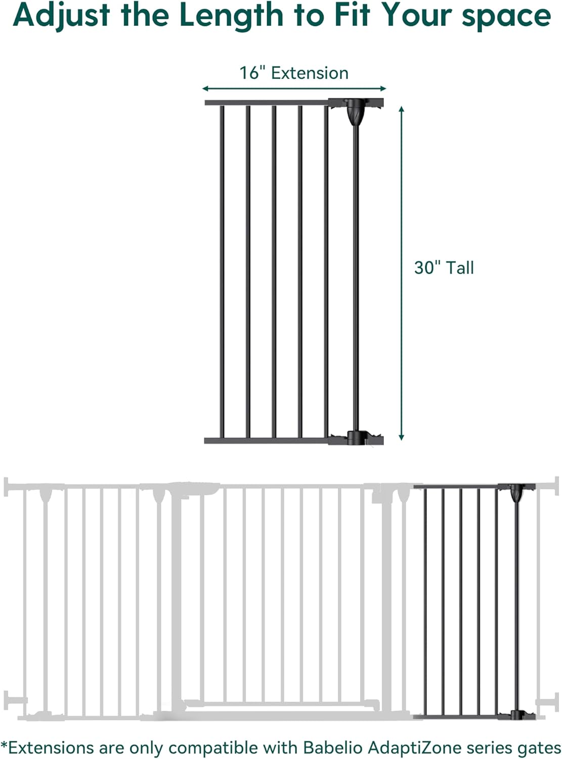 • Extra Wide Baby Gate: Foldable baby gate stands 30" tall and expands to fit openings from 33-104", while its 25" extra-wide walk-through door lets strollers and adults pass easily. Notice: Must measure your openings before purchasing this gate.