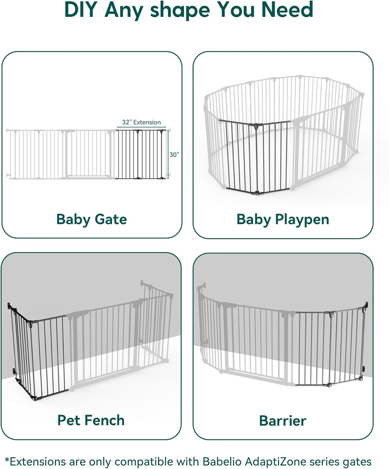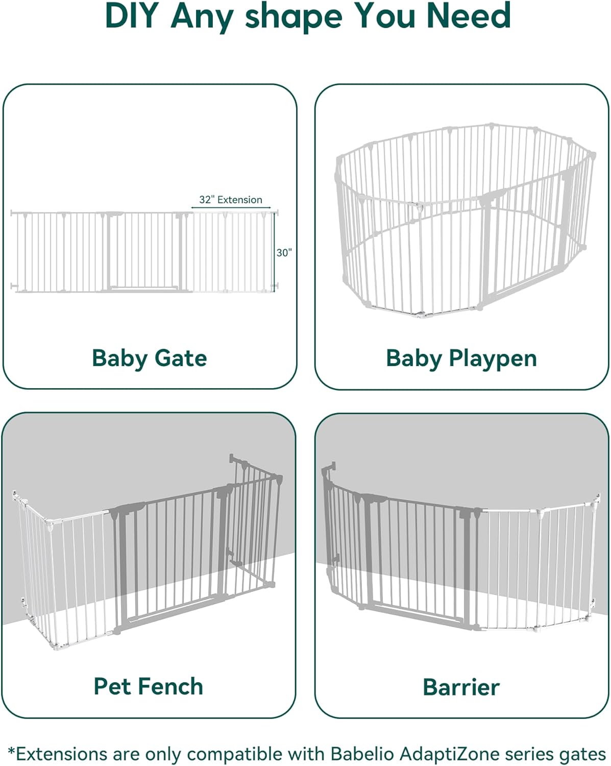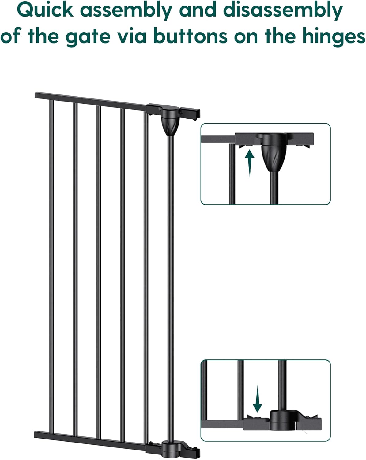 • Configurable and Detachable: Adjustable mounting brackets swivel and slide up/down, allowing installation directly over baseboards, letting you set the gate at your ideal height and angle for a perfect fit. Modular design allows custom width adjustment by adding/removing panels, while foldable construction saves storage space.