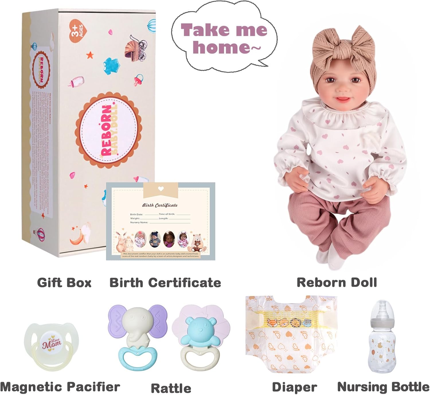 | Included Components | 1 x diaper, 1 x gift box, 1 x nursing bottle, 1 x rattle set, 1 × reborn baby doll |