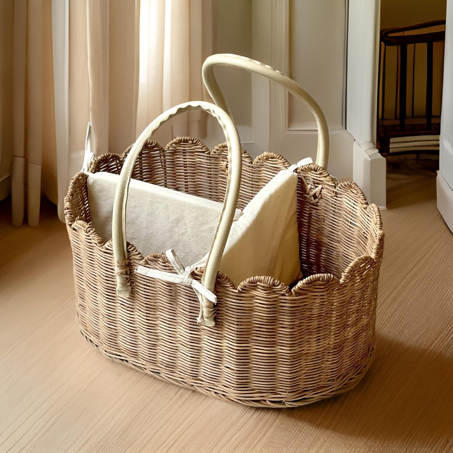 The rattan all natural diaper caddy organizer is a beautifully crafted and eco-friendly solution for keeping your baby's essentials organized. Durable and versatile, this organizer can be used from the baby stage through childhood and beyond. Crafted from sustainable rattan, it features a removable divider in a cotton canvas, ensuring your items stay neatly arranged. With its stylish and natural aesthetic, this diaper caddy organizer not only keeps your nursery tidy but also complements your decor. Measuring approximately 16 x11 x 7 inches, it provides ample space to store diapers, wipes, creams, pacifiers, toys, and other necessities within easy reach. Lightweight and portable, it's the perfect baby shower gift or addition to any modern nursery.