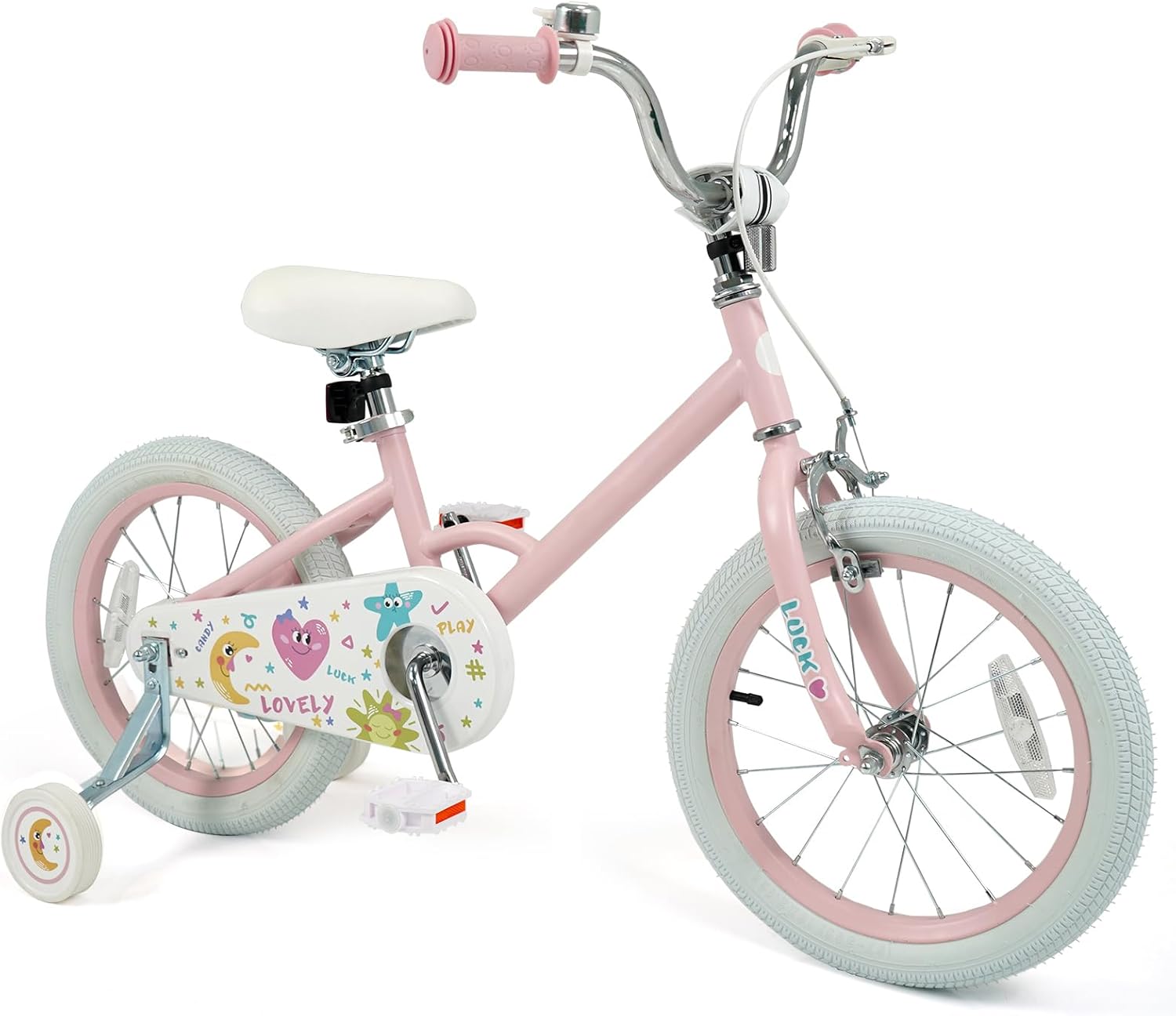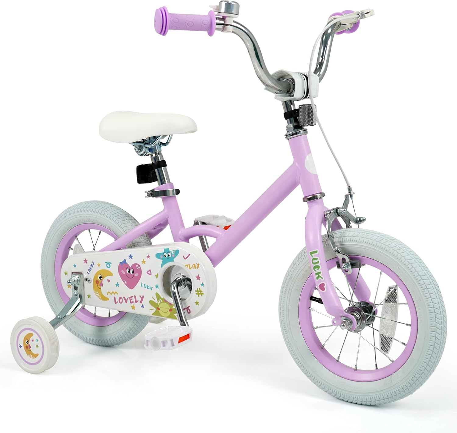 Description:Give your child the perfect start on their cycling journey with our kids bicycle! Designed for growing up boys and girls, the children’s training bicycle grows with your child with the help of the adjustable handlebar and saddle. With reliable handbrake and coaster brake, your little one can learn to ride safely and confidently. Moreover, 2 removable training wheels offer extra stability for beginners and can be easily taken off as your child’s skills improve. Thanks to strong frame and high quality tires, this children bike is built to withstand adventure and play. More importantly, it is also ASTM/ CPSIA compliant. The bright colors, bike bell, and comfortable seat make it a fun and stylish choice for young riders. It will be the the perfect birthday or holiday gift for your kids. Features:Adjustable seat and handlebar to suit kids of different heights Quick release lever for easy adjustment and tight fixationFully enclosed chain guard for safe ridingDesigned with a safe dual brake system: handbrake and rear coaster brakeIdeal riding choice for 3-4/3-5/-4-7/4-8 years old kidsFront & rear reflectors and wheel reflector ensure easier visibility to others 2 removable training wheels help kids learn to ride and keep balanceSturdy metal frame and wear-resistant wheels for long-term useAnti-slip handlebars and pedals for extra safetyFun bell & anti-slip grip for more convenienceASTM/ CPSIA compliant for reliable securityIdeal for cement floors, boardwalks, asphalt roads, and moreGreat for kid’s building strength, improving balance, and developing self confidenceKickstand allows your kids to ride more courageously (for 18 Inches)Pre-assembled design for hassle-free assemblySpecifications:Color: Pink/ PurpleMaterial: Metal, Rubber, PP, PVC, TRP12"Product Dimensions: 35.5” x 19.5” x 26”-27” (L x W x H)Saddle Height: 18.5”-21”Inseam Size: 17.5”-20”Suitable Height: 31.5”-41.3”Suitable Age: 3-4 Years OldWeight Capacity of Seat: 110 lbsNet Weight: 18.5 lbs14"Product Dimensions: 39.5” x 19.5” x 29”-30.5” (L x W x H)Saddle Height: 20.5”-22.5”Inseam Size: 19.5”-21.5”Suitable Height: 37.4”-43.3”Suitable Age: 3-5 Years OldWeight Capacity of Seat: 110 lbsNet Weight: 20 lbs16"Product Dimensions: 44.5” x 21.5” x 31.5”-32.5” (L x W x H)Saddle Height: 22.5”-25”Inseam Size: 21.5”-24”Suitable Height: 41.3”-51.2”Suitable Age: 4-7 Years OldWeight Capacity of Seat: 110 lbsNet Weight: 22 lbs18"Product Dimensions: 50” x 21.5” x 32.5”-34” (L x W x H)Saddle Height: 24.5”-26.5”Inseam Size: 23.5”-25.5”Suitable Height: 47.2”-59.1”Suitable Age: 4-8 Years OldWeight Capacity of Seat: 132 lbsNet Weight: 23.5 lbsPackage Includes:1 x Kid’s Bike1 x Instruction