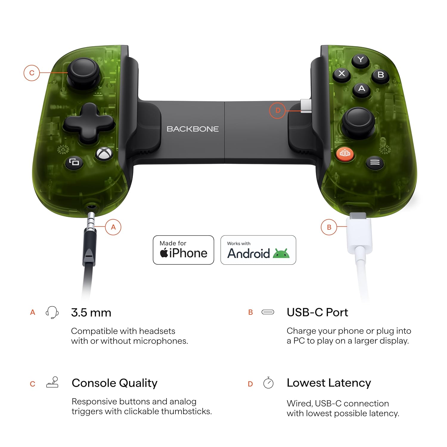 Give the gift of console-quality play anywhere with the Backbone One Xbox Edition. Designed in collaboration with Xbox, this Backbone controller turns any Android or iPhone 15/16 series into a powerful portable console. With responsive joysticks, tactile triggers, and an upgraded D-pad, it feels instantly familiar to gamers who love precision and comfort. The easy snap-in setup and direct USB-C connection make it simple to use right out of the box—ideal for players of all skill levels and a thoughtful surprise for birthdays, holidays, or special occasions. Through the Backbone app, this controller for phone brings all your titles and services into one place, letting users discover new favorites on Xbox Game Pass Ultimate, Apple Arcade, or Steam Link with no hassle. More than just a gaming controller, the Backbone One Xbox Edition supports remote streaming from Xbox and PC, offering incredible flexibility. Its usb c design ensures low-latency performance without draining your battery, while the 3.5mm headset jack and Bluetooth audio support make it easy to connect for immersive sound. Compact and travel-ready, this mobile game controller is perfect for competitive gamers chasing wins on the go or for gift buyers looking to delight friends, kids, or family with a device that unlocks endless entertainment. Whether for daily gaming sessions or as a memorable present, Backbone delivers a premium play experience that anyone can enjoy.