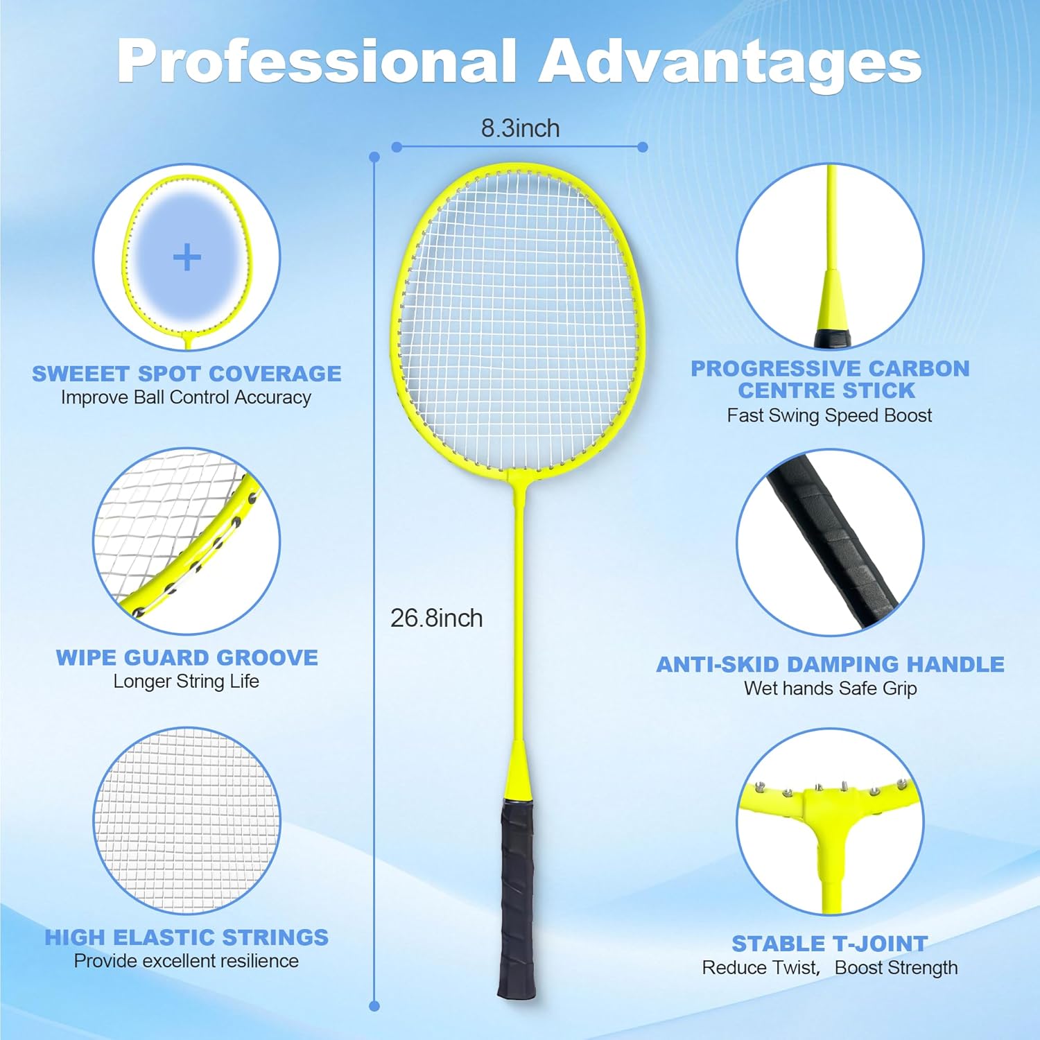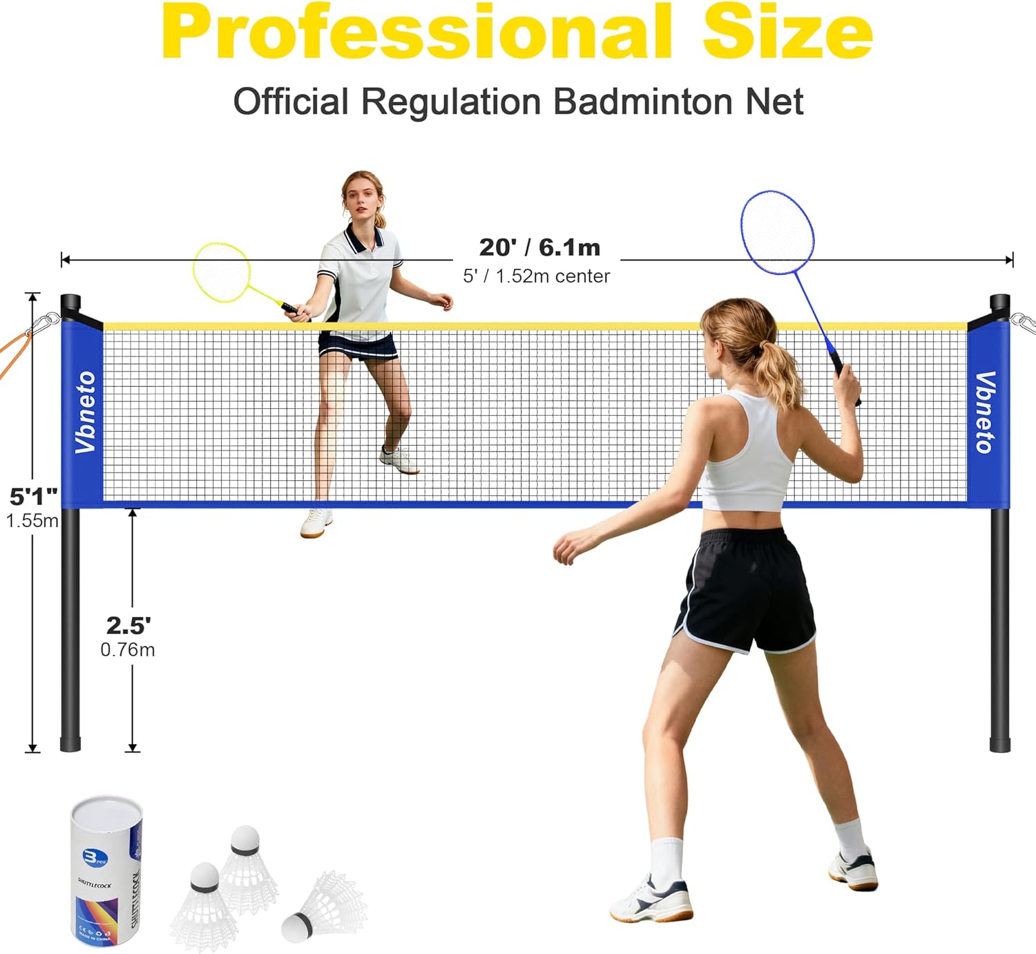 | Included Components | 1*20ft*2.5ft net, 3*shuttlecocks, 4*badminton reckets, 6*mental poles |