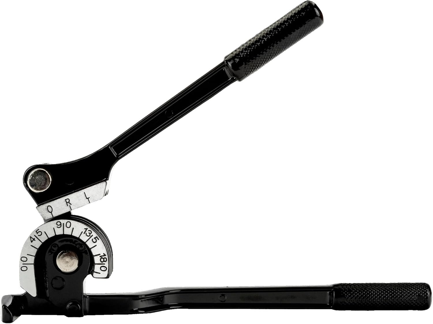 Multipurpose tube Bender, bends up to a 90° angle. For 1/4", 5/16" And 3/8" (6, 8 and 10 mm) aluminum, copper and stainless steel tubing. Detailed and easy readable scale improves accurate bends.