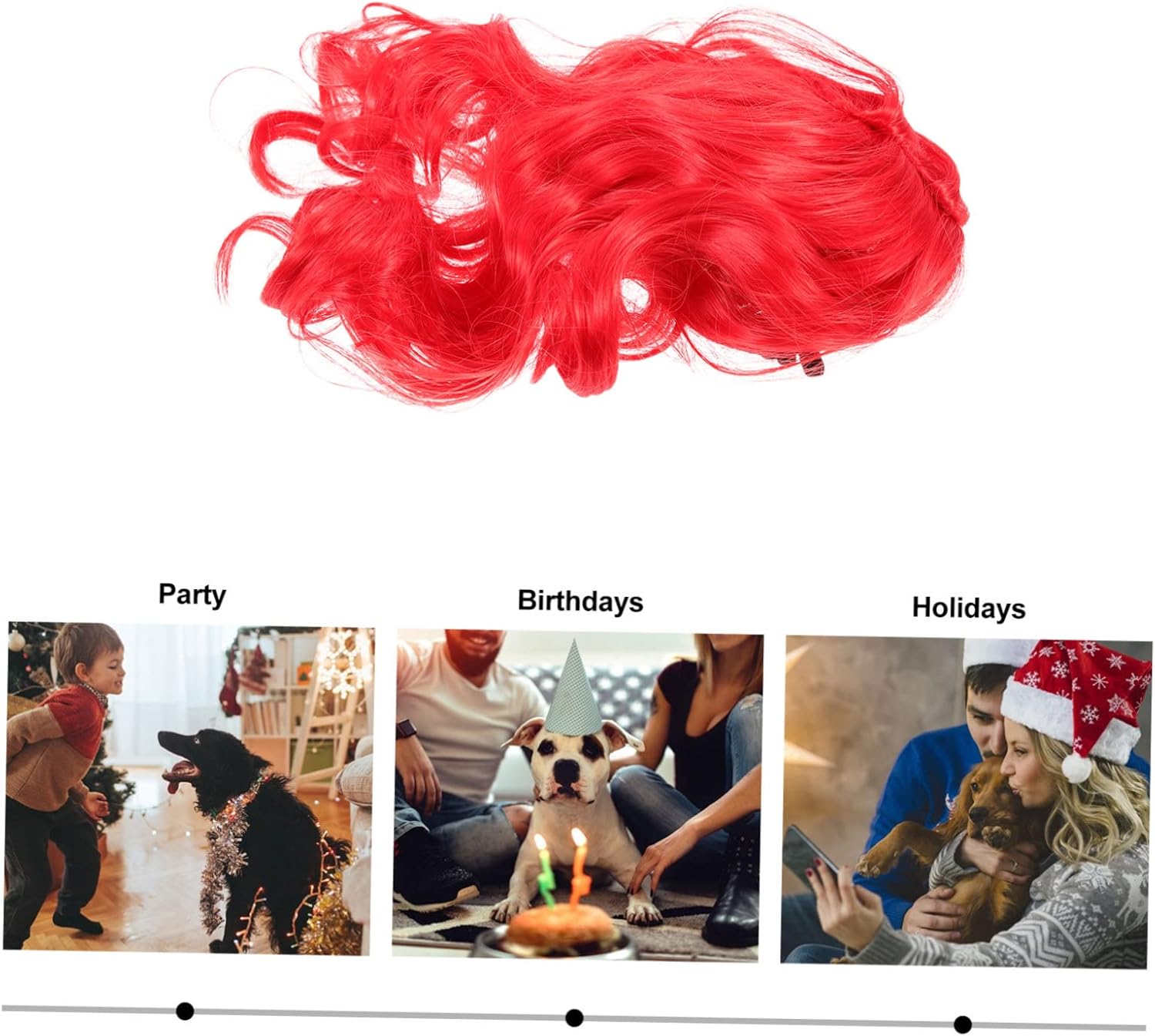 Package List 4 x Dog Curls Wig Characteristics -Material:Polyester dog hair accessories -The pet wig is designed for pet head, which can make your pets comfortable and adorable dogs decoration. -Suitable for both cats and dogs to wear, can be given as nice for your beloved pets to show your care and love pet wig headpiece. -Color:Red Cat Wigs -Size:28.00X15.00X2.00cm/11.00X5.89X0 Pet Hair Funny. -This dog decor is a for your pet, enjoy Halloween, festival, holiday and party with pet friends dog cosplay wigs. -Even in daily life, this dress-up pet wig decor will the charm of pets, make pets look very cool halloween dog headpiece. -This Dog Wig Headdress is a good supplement for pets headdress, an choice for your dogs and cats pet wig.Goods Descriptiondog party wig This product is an Dog Wigs headgear, made of fabric materials, and comfortable, pets.party dog curls hat The beautiful and interesting appearance will make your pet more lovely and eye-catching.party favors Dress up your little pet with this chic wig