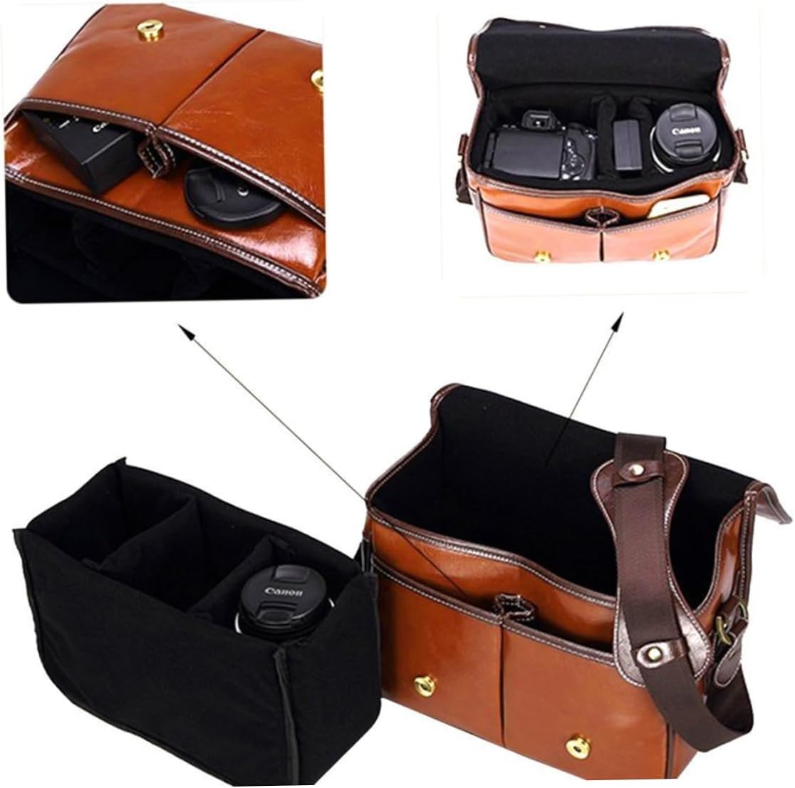 Package Include 1 * Multi-function PU Leather Waterproof DSLR Camera Bag Shoulder Messenger Bag Outdoor Portable Photography Video Pouch for Travelling Hiking Mountaineering Camping - Size L (Red Brown) Characteristics - Material: PU leather Vedio Camera Bag. - Color: Red Brown Waterproof Camera Bag. - Size: Approx. 32.5 * 14 * 24cm/ 13 * 5.5 * 9.4 inch (L*W*H). - Wear resistant, waterproof and resistant camera bag with soft, strong and durable texture for comfortable carry DSLR Bag. Camera Pouch - Removable, adjustable inner divider to hold camera more sturdy, take out the liner, and also can use as a leisure bag Camera Bag. - Outer button-down pockets design, can storage your business cards, phone, wallet, and some small Article. - for photography lovers for short trips, hiking, mountaineering and camping.Goods DescriptionCamera Pouch You can also take out the liner which also can use as a leisure bag. DSLR Bag This removable, adjustable inner divider can hold camera more sturdy.Waterproof Camera Bag This item is manufactured with PU Leather material which let this camera bag looks more fashion and durable.Vedio Camera Bag It's for photography lovers for short trips, hiking, mountaineering and camping