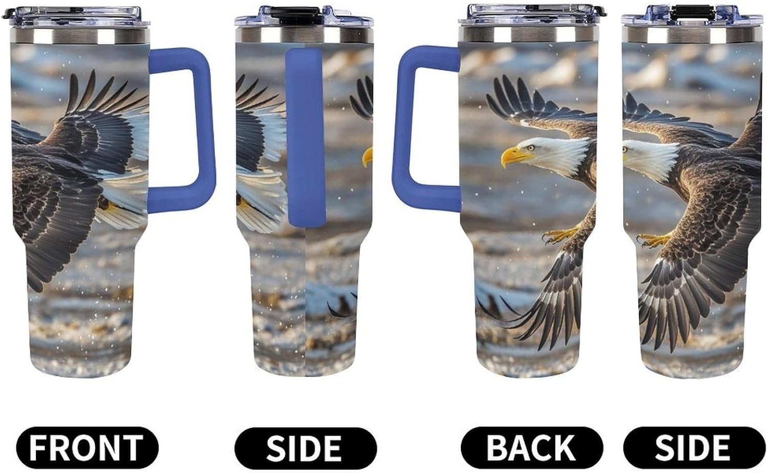 Crafted with 304 stainless steel, this Double Wall Vacuum Bald Eagle Flying Travel Mug prioritizes both durability and safety. Its sleek design earns it the title of a Fashion Coffee Cup, complementing any setting from your kitchen counter to your car's cup holder. The Cupholder Friendly Double Wall Travel Cup shape ensures stability, even on bumpy roads, making it an ideal Travel Coffee Mug for those always on the move.This 40 oz Bald Eagle Flying Stainless Steel Bottles is more than just a drinkware item—it's a lifestyle essential designed for modern living. As a Vacuum Insulated Tumbler, it leverages double-wall technology to keep your drinks hot or cold for hours, making it the perfect Insulated Coffee Cup for early mornings and late afternoons alike. The BPA-free lid with a stainless steel straw offers two convenient drinking options, while the leak-proof seal ensures peace of mind during your daily commute or outdoor trips.Whether you're heading to work, embarking on a road trip, or simply relaxing at home, this Large Travel Flask adapts to your needs. Its generous capacity eliminates the need for frequent refills, while the easy-to-clean interior and included brush simplify maintenance. Embrace the convenience and style of this Cute Travel Mug—a must-have for anyone who values functionality without compromising on aesthetics.Insulated Coffee Cup Travel Coffee Mug Vacuum Insulated Tumbler Cute Travel Mug Double Wall Vacuum Travel Mug Stainless Steel Coffee Mug Insulated Car Cup Stainless Steel Bottles Coffee Tumbler Vacuum Travel Mug Leak-proof Large Capacity Car Cup Keeps Cold or Hot Portable Coffee Cup Insulated Water Bottle Stainless Steel Water Bottles Fits in Any Car Cup Holders Large Capacity Metal Coldest Flask Reusable Mug with Straw or Leakproof Flip Lid, Keeps Drinks Cold Insulated Stainless Steel Cup Insulated Coffee Mug Thermal Cup Stainless Steel Tumbler Reusable Cup with Straw Leak