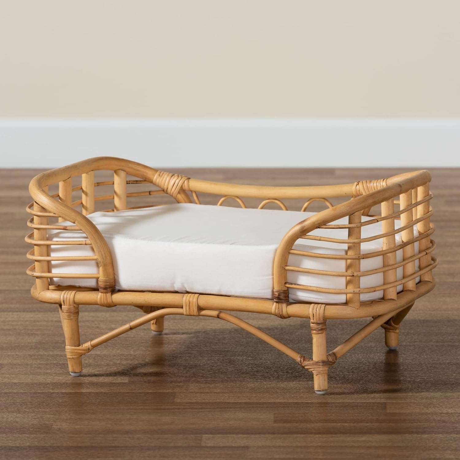Build a pocket of paradise for your beloved pet with the incredible Malino pet bed. Made in Indonesia, this remarkable piece is handcrafted from natural rattan by skilled artisans. Its plush cushion is padded with layers of soft foam and upholstered in smooth fabric to give your pet a cozy spot to nap and rest. The Malino will arrive fully assembled and is enclosed on three sides to ensure that your pet is safe and secure. Bamboo-like legs provide elevation, making the Malino pet bed a fantastic accessory for any pet-friendly home. Due to the nature of the natural materials used in this product, it may have variations in areas such as, but not limited to, color, pattern, grain and texture. The hair-like strands of rattan/rattan-fiber are common due to nature of the material.
