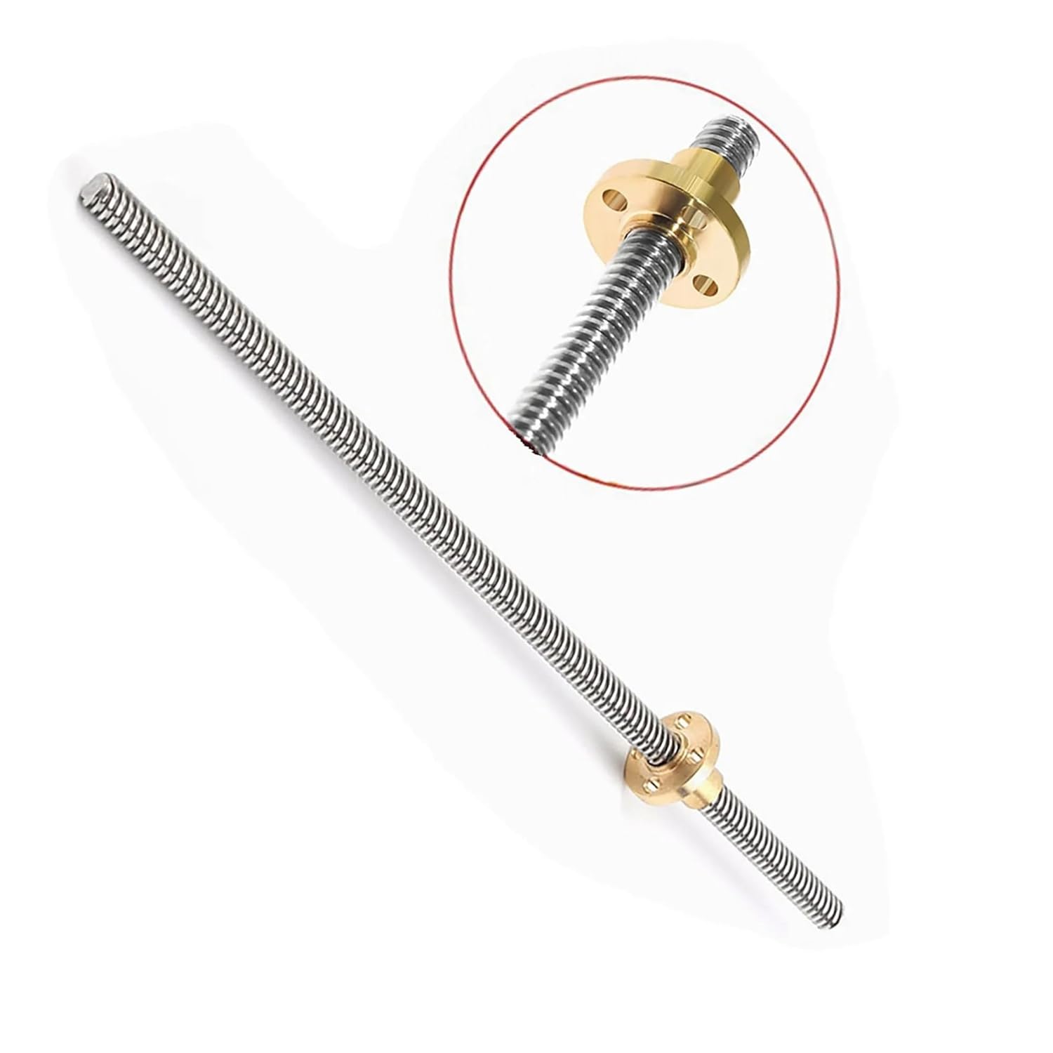 1. Anti-backlash and can be used vertically. 2.Long service life due to low friction.3.The ballscrew is good wear resistance. low operating noise and high transmission efficiency.Name: 3D Printer T8 trapezoidal spindle screw with nutLead screw diameter: 8mmPitch: 2mmLength: 350mm , 400mm , 450mm , 500mm , 600mm , 1000mmPacking list: 1pc T8 Lead Screw +1pc Copper Nut