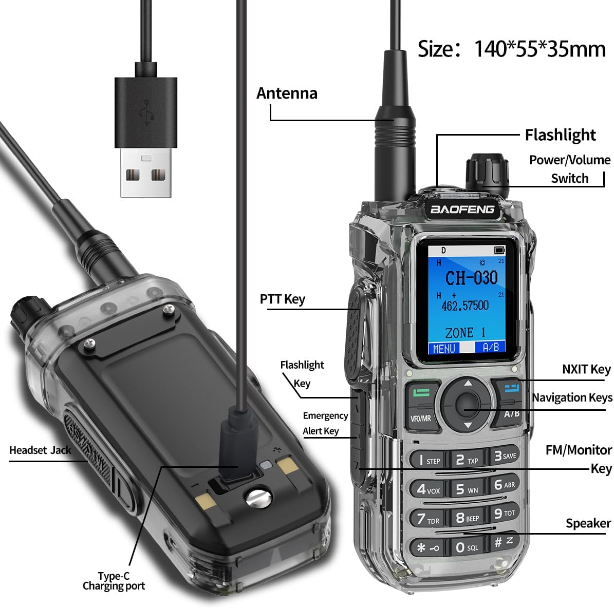 | Compatible Devices | BAOFENG radios, GMRS radios, Headsets, Lanyards |