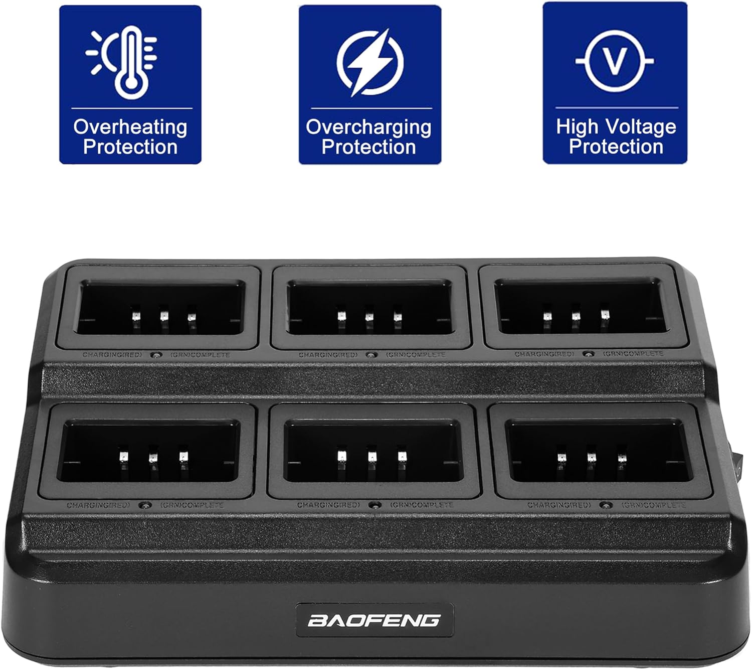 | BuiltIn Media | 6 x BAOFENG UV-5R radio with antenna, 6 x 1800mAh Li-Ion battery, 6 x Headset, 1 x 6 Way Charger, 6 x Belt clip, 6 x Hand strap, 1 x English manual |