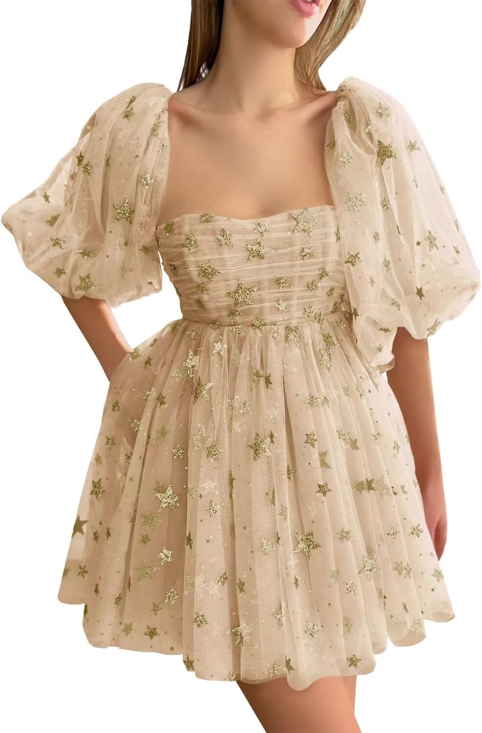 Welcome to Basgute, we're a professional manufacturer and seller of prom dresses, evening dresses, wedding dresses,bridesmaid dresses and party dresses. We offer high quality dresses to our customers. Product Description: Fabric: Starry Tulle Neckline: Sweetheart Dresses Length: Knee Length Back Design: Drawstring Silhouette: A Line Suitable for: Women, Teens, Girls Customized Services: Customization is available. 1.Bust = ___inches. 2.Waist= ___inches. 3.Hips = ___inches. 4.Hollow to Floor with Heels=___inches. 5.Your height=___inches.