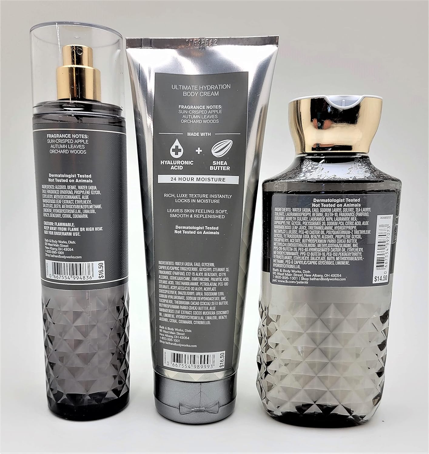 Indulge in the cozy comfort of fall with this Bath & Body Works Sweater Weather 3 pc . This unisex includes a Fine Fragrance Mist, Ultimate Hydration Body Cream, and Shower Gel, all in a delightful fall scent. The 8 fl oz mist and 8 oz cream come in a bottle, while the 10 fl oz shower gel is separately packaged. The body cream, enriched with shea butter, vitamin E, and aloe, provides ultimate hydration, making it perfect for dry skin. This 1.5-pound set is a great way to enjoy the season's scent throughout your daily skincare routine.