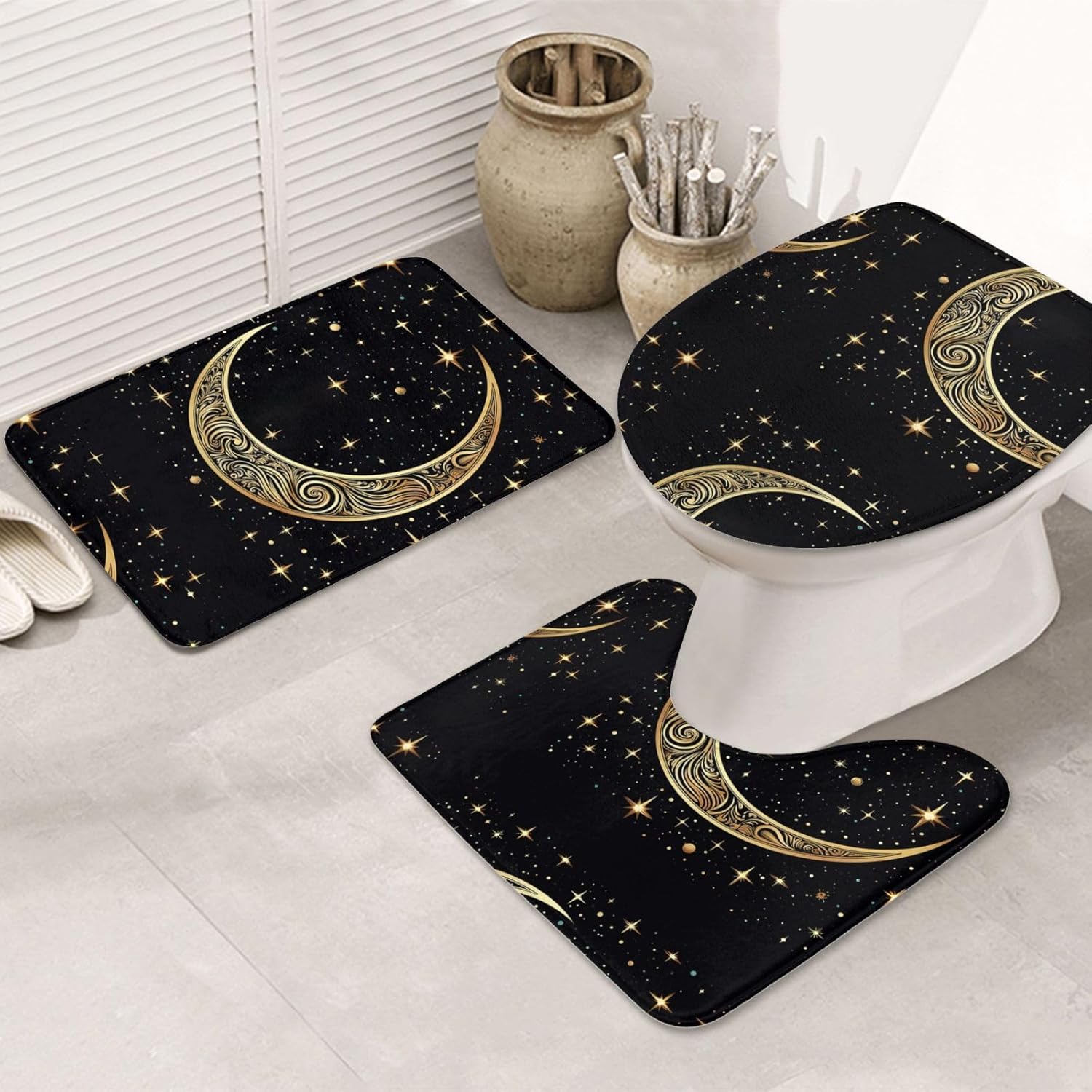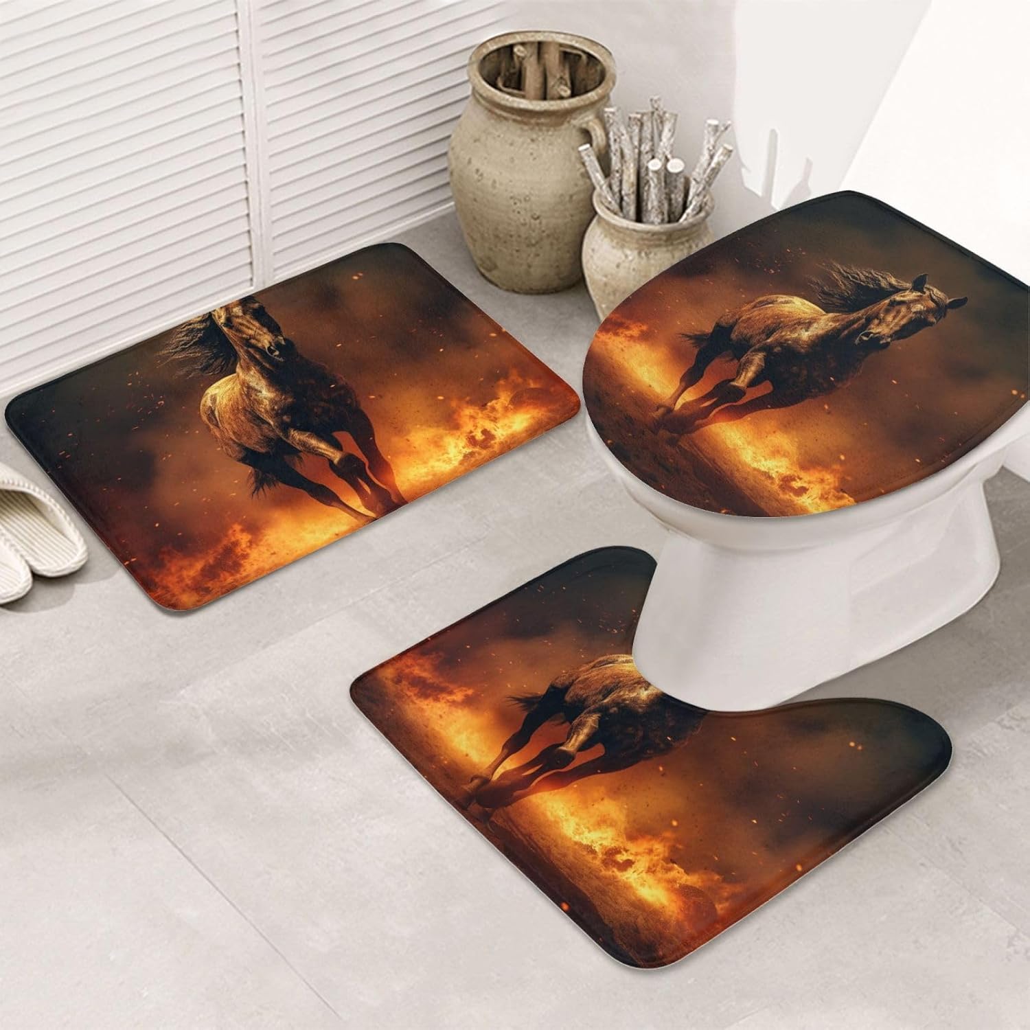 Lion image Bathroom Rug Set of 3 Non Slip Bath Rug Contour Mat Bathroom Floor MatWater Absorbent Bathroom Rug MatsThe surface design of bath rugs increase the water absorbent capability, and the material is easily to absorb the water while you're stepping out of the bathtub or shower cubicle, keeping the floor clean and dry at any time.Non Slip Shower Mats for BathroomNon skid backing features high quality TPR rubber material to prevent the Lion image bathroom mat from shifting and skidding, strongly hold shower mats firmly in place, protecting you and family. Bathroom Rug Sets 3 PieceThe soft shaggy microfiber fabric, will not let the water drip on to the floors, when you are stepping out of your bath, shower or getting ready by the sink. Further, there is moisture trapped inside the mat's deep pile, which allows the rug to dry quickly and cleanly.Heavy Density MicrofiberThe bath mats are made up of 1.18-inch height premium thick, soft and fluffy microfiber, where with the help of unique fiber locking technique, the fluff is thicker, making it well-suited for bathroom, vanity, vacation home, master bedroom, kids' bathroom, guest suite.