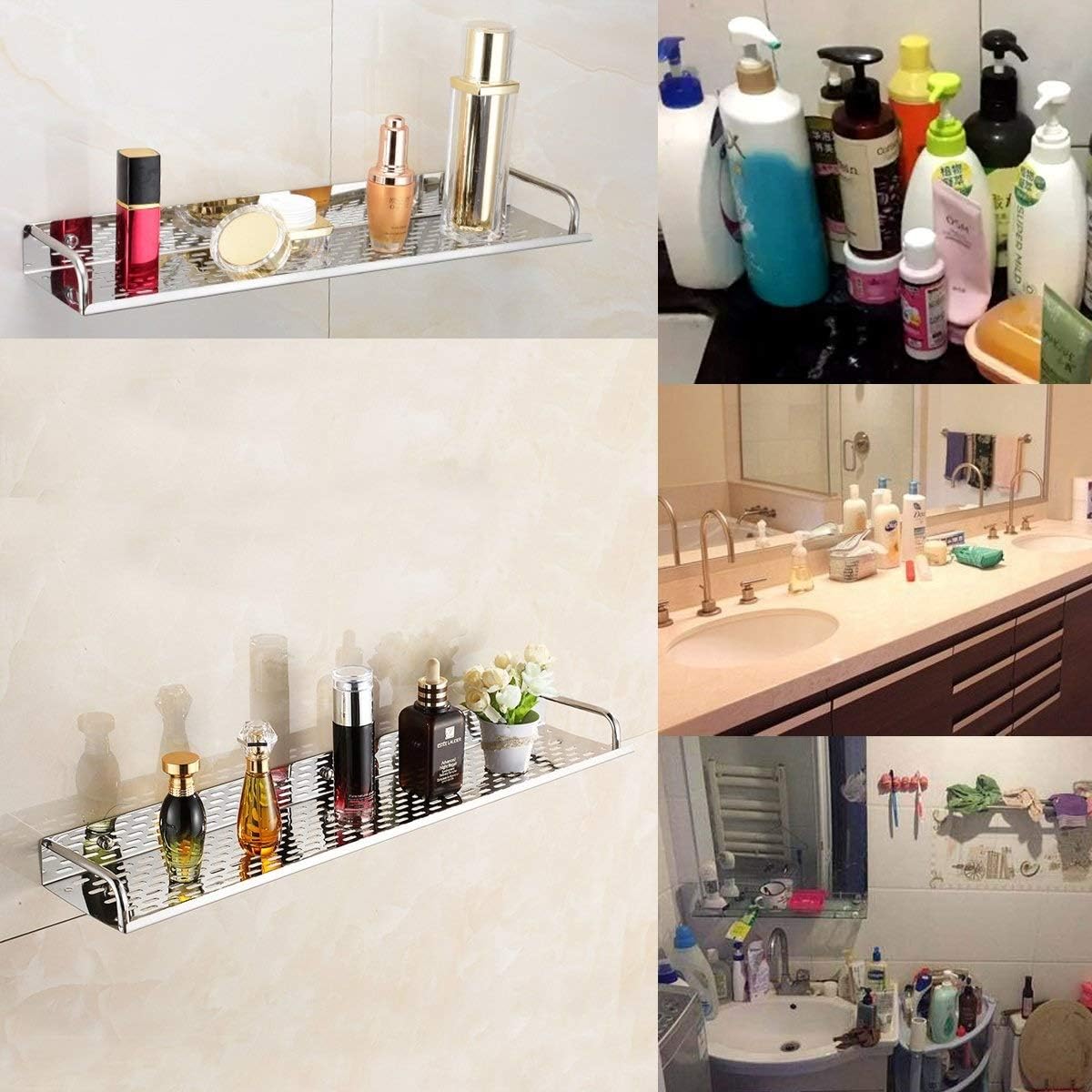 Color: As shown.Material: Stainless steel.Size: 40cm / 15.7inch.Innovative design creates the stylish, functional bathroom shelf, which has rounded edges, Whether you need to organize your bathroom, kitchen, bedroom, living room, these floating shelves provide smart and stylish storage. Arrange those floating shelves as needed vertically, the wall or configure them as a corner shelf to fit your needs.