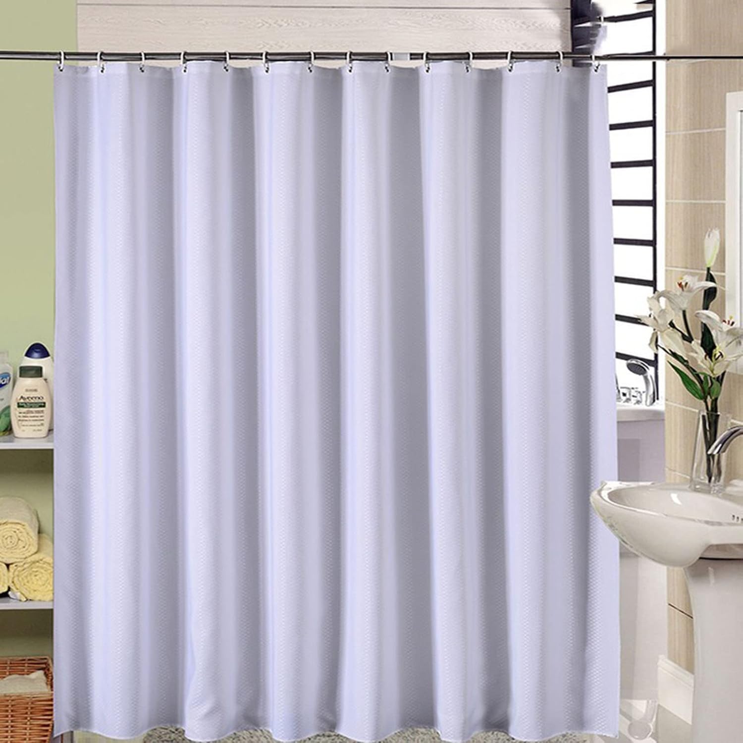 Main Features:Water Proof, Kid and Pet-Friendly.Reinforced Nylon Mesh Header with Stainless steel Grommets, that will make this shower curtain liner easy to hang and smoothly to adjust.Weighted Thickness polyester Drapes Naturally, Keep your shower curtain stay in place naturally.Durable and Elegant. Easy care, wipes clean with damp cloth. Use it as a stand-alone curtain or as a liner for your bath tub.High Quality polyester fabric, thick and reliability but soft in touch Fabric shower curtain liner is to assistant your qualified life in your bath, with this reliable, heavy but soft fabric which can repel water, it resists effectively keeping water inside the shower or bathtub. It can be used as a stand alone shower curtain or as a liner to coordinate with your decorative shower curtain. Rust Proof Stainless steel Grommets construction and bottom with weighted band to keep hanging and standing The fabric curtain can be washed in the wash machine or by handsPremium Material:100% polyesterColor Information:whitePackage included:1 x shower curtain