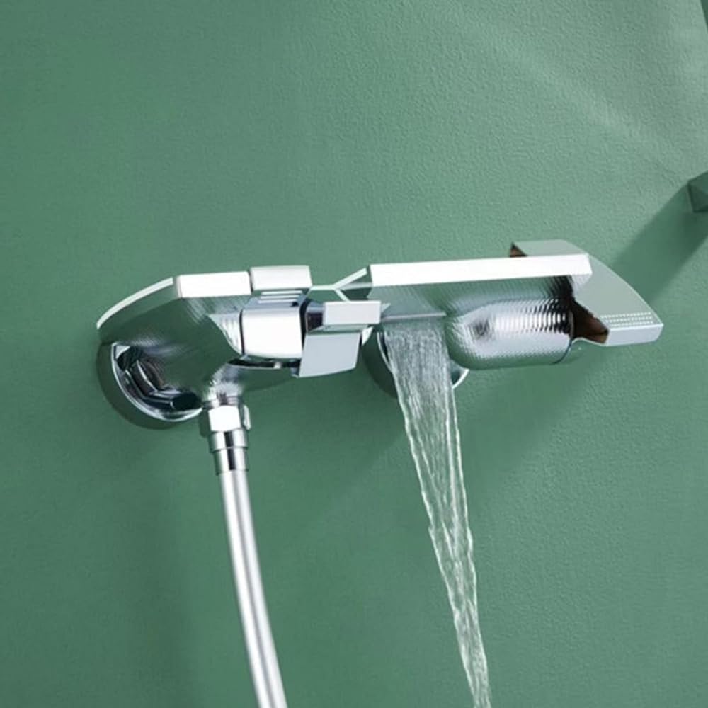 Type: Tub Faucet with Hand ShowerFeature: Waterfall Bathtub Faucet, Handheld ShowerBody Material: BrassHand Shower Material: ABSShower Hose Material: 304 Stainless SteelValve Type: Ceramic ValveSurface Finish: Black , Chrome , Gold , Gray , WhiteNumber of Handles: Single HandleNumber of Holes: Two HolesCold/Hot Water Control Type: Single Holder Dual ControlInstallation Method: Wall mountedStyle: Modern Tub FaucetCold and Hot Switch: YesType: Bathroom Mixer TapShower Hose Length: 150cmDistance of Center to Center: 15 cm (13.5-16.5 cm, adjustable)Due to different manual measurement, please allow slight size difference.