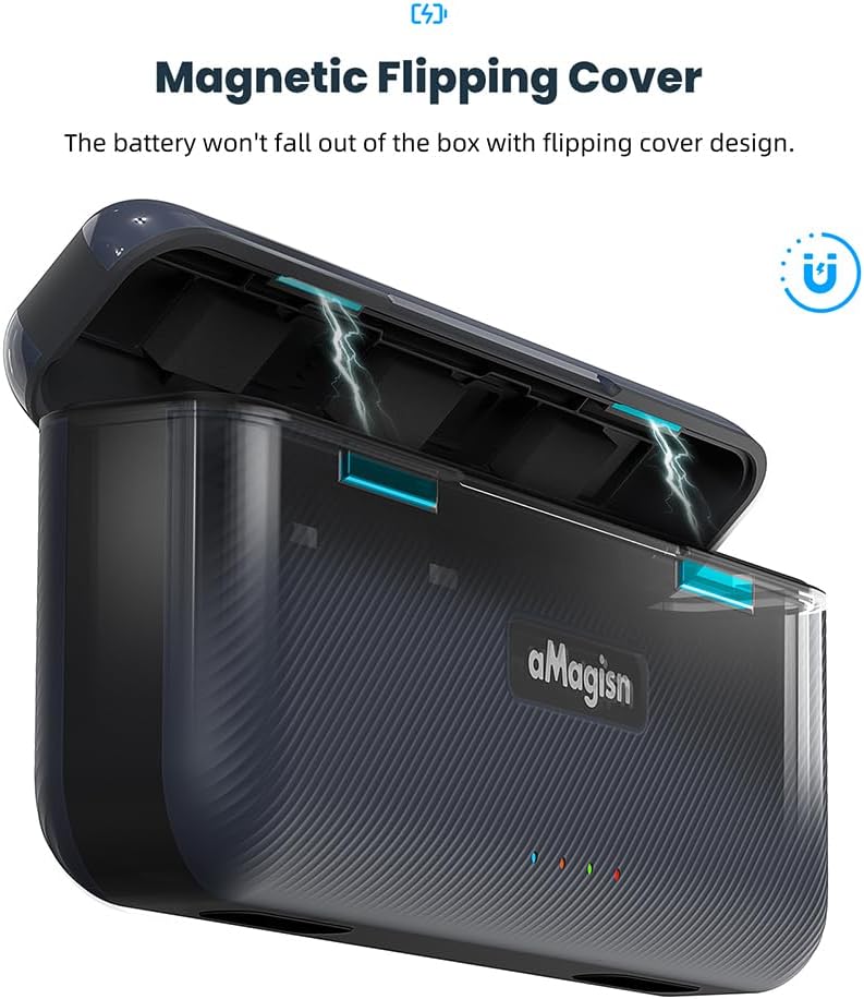 1. Compatible models:DJI Osmo Action4/Osmo Action 3 (Note: batteries not included) 2. Portable fast charging case is small, powerful, convenient and practical. With over-charge, short circuit, overheat, over-current and over-voltage protection. 3. Portable charging case Small size Powerful USB type C charging port, supports PD3.0/PD2.0 fast charging protocol; 80% charging time for 2 batteries is only 35 minutes, 100% charging time for 3 batteries is only 75 minutes. 4. Features: The charger can intelligently switch charging modes according to different states of the battery, when battery power is low, it intelligently opens fast charge mode, when battery power reaches 80 percent, it intelligently starts trickle charge mode When the battery power reaches 80 percent, it will intelligently start trickle charge mode. Start charging slowly, can greatly enhance the service life of battery 5.Shipping List: Charger*1 + USB Type C charging cable*1