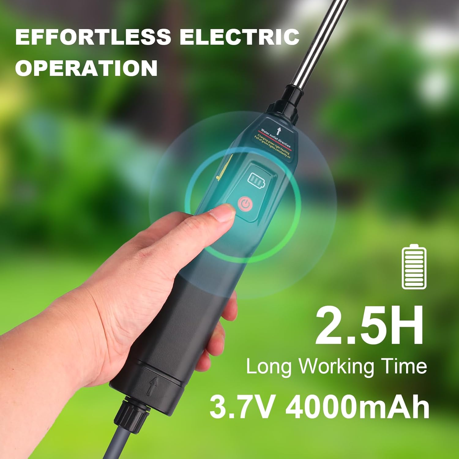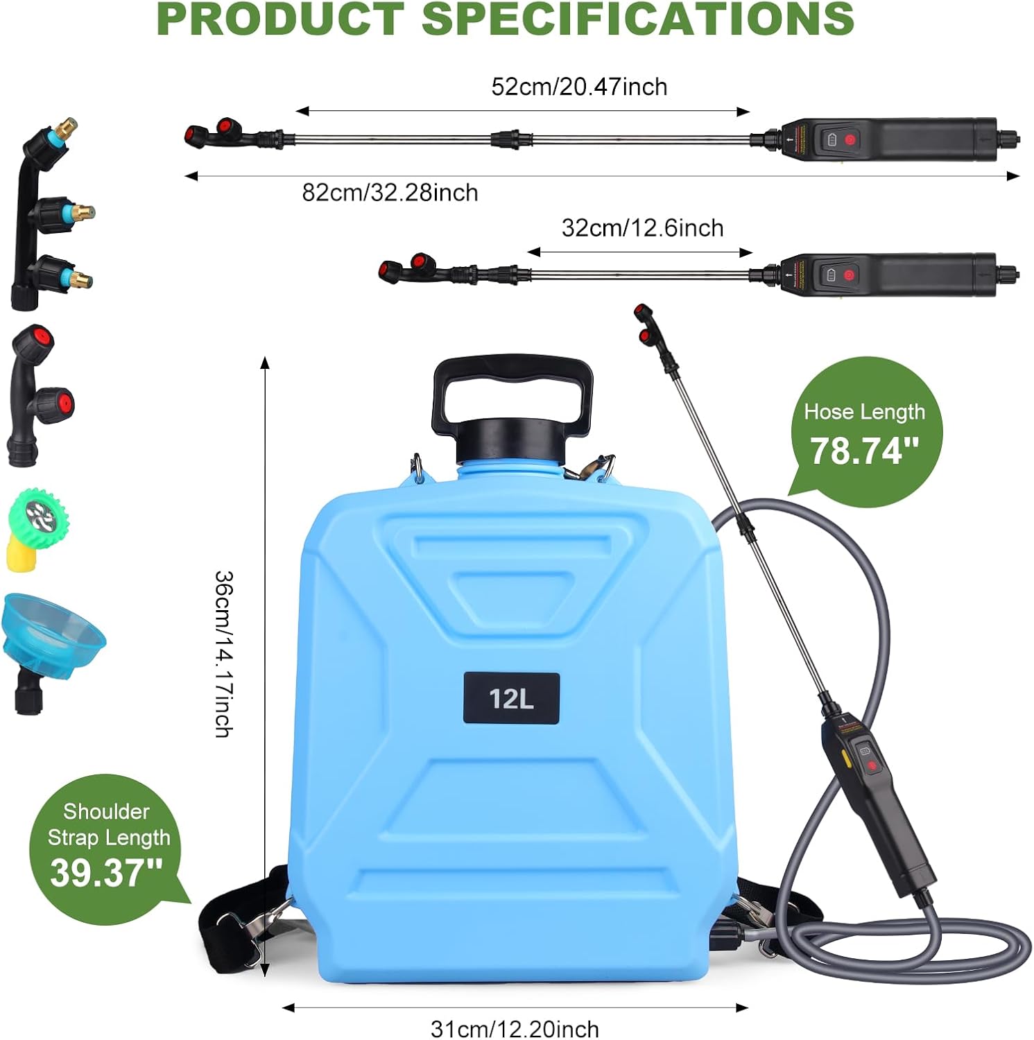 | Included Components | Hose, 4 Mist Nozzles, Telescopic Wand, Battery, Battery Charger, Adjustable Strap |